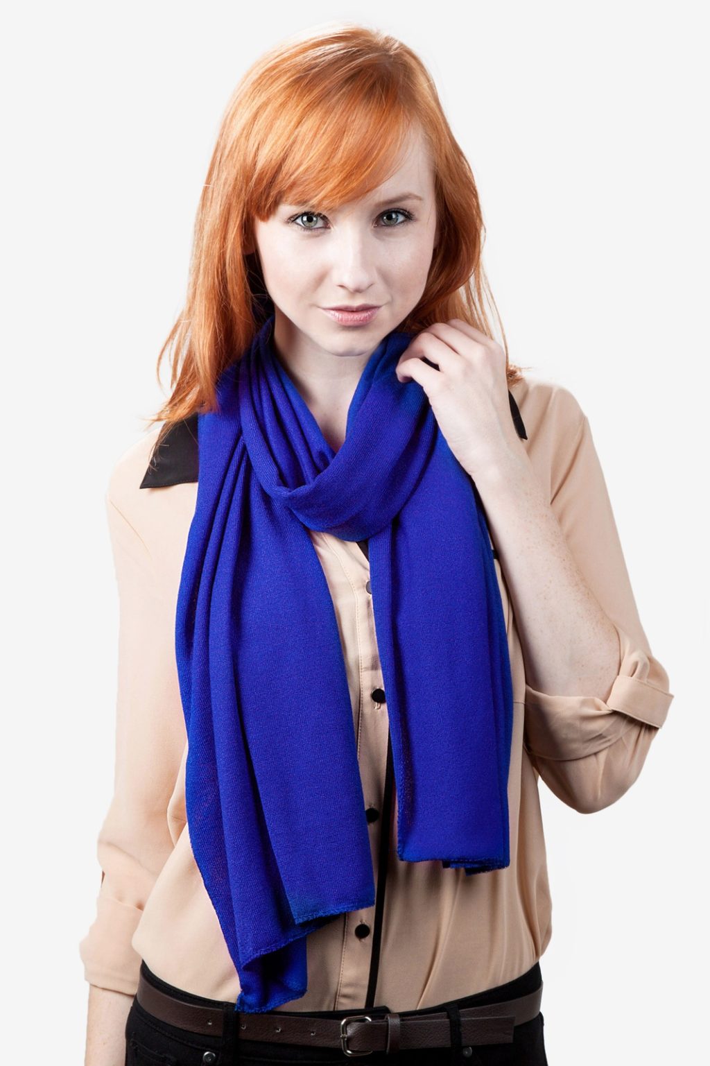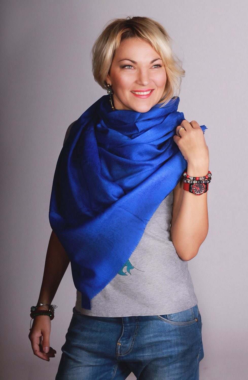 Also, blue deep and saturated shades do not lose their relevance. A scarf of this color looks quite restrained and noble.