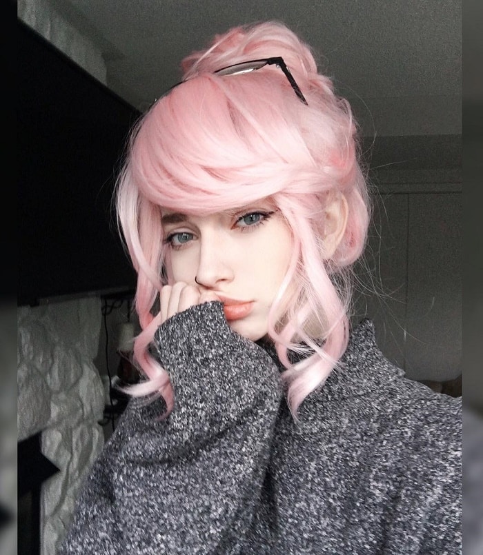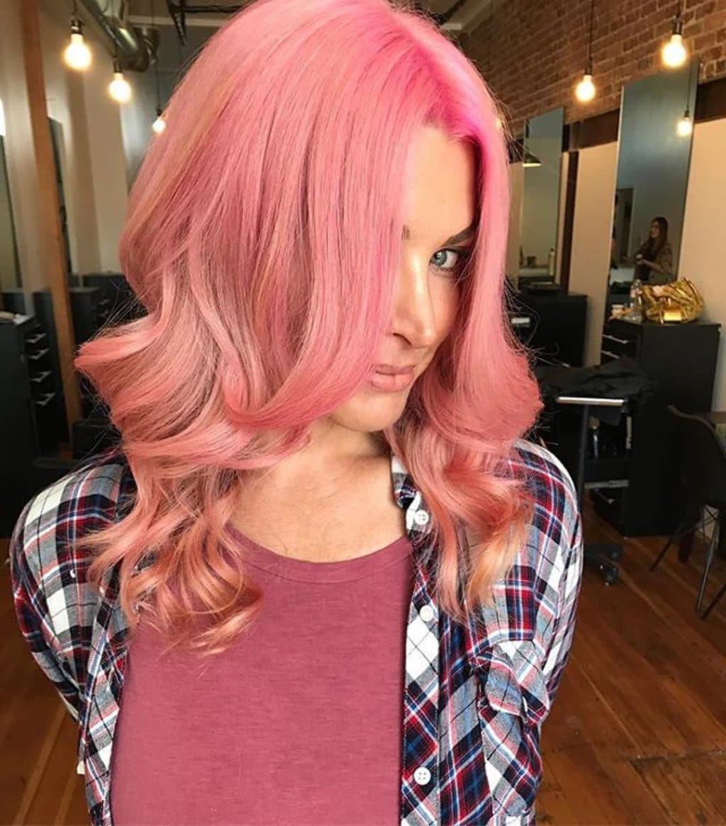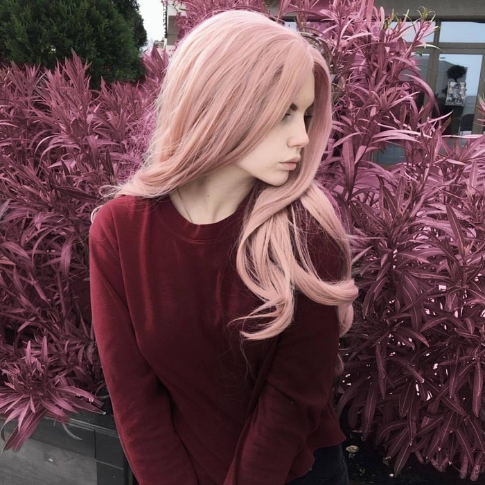 Soft pink color looks great on short, medium and long hair, as well as on curly or curly hair. The most difficult thing in combination with this hair color is the selection of cosmetics. It should not be too catchy or too pale, the golden mean is your ideal option.