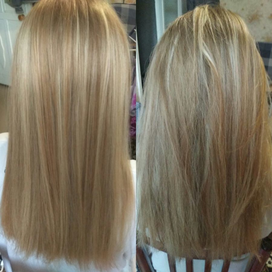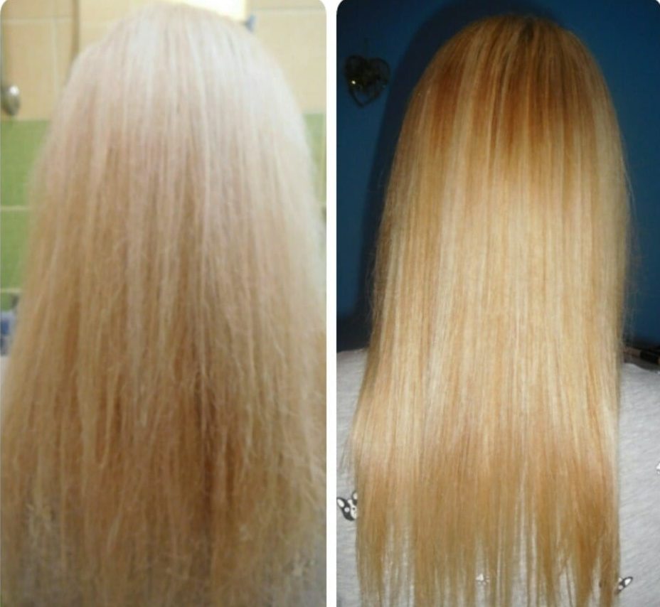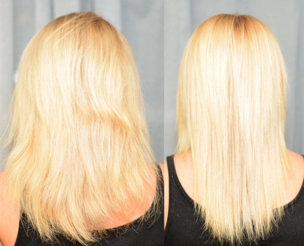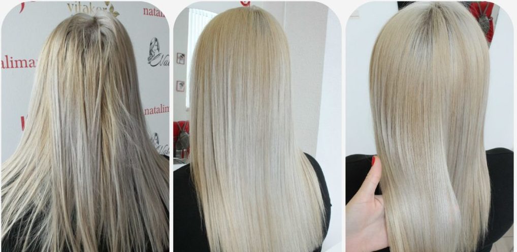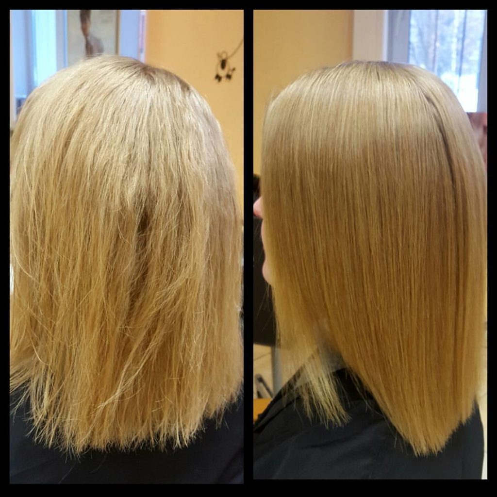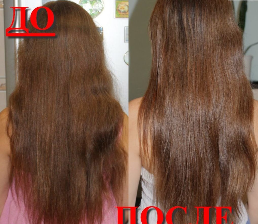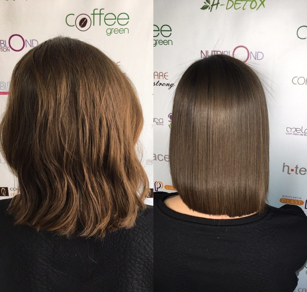 Thanks to the action of keratin, of which our hair consists of 90%, our hair is saturated with useful properties that help to straighten them in the future. And they get a smoother and silky look.