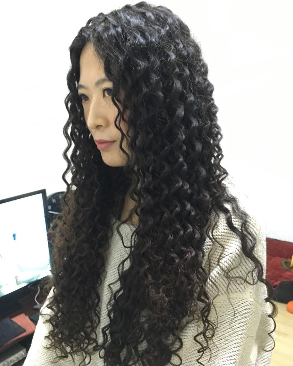 Neutral, Acidic, and Wet Look curls are able to give you small, not tight curls for a long hair length. Another look that suits long hair if it’s not too thick is it is acidic.