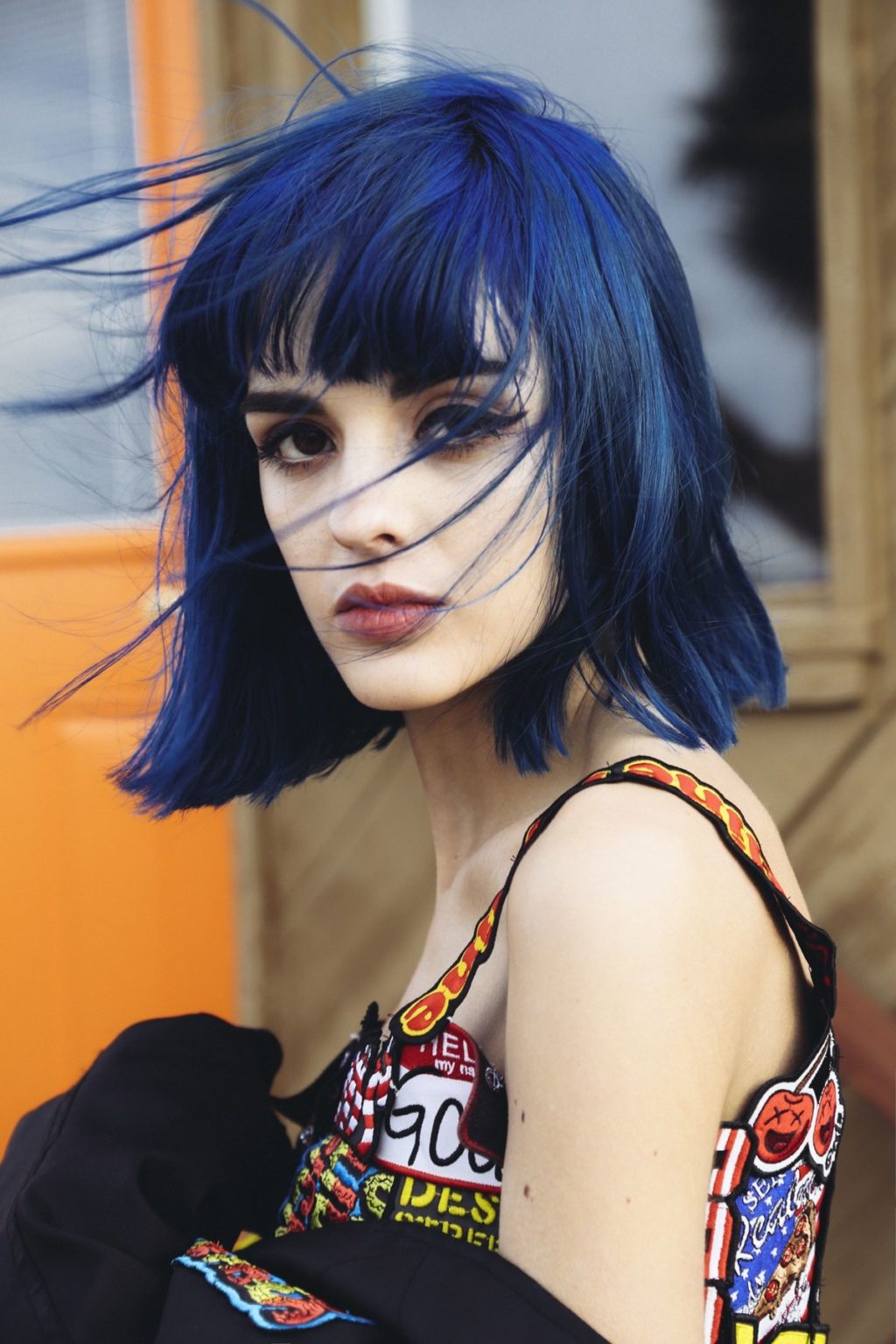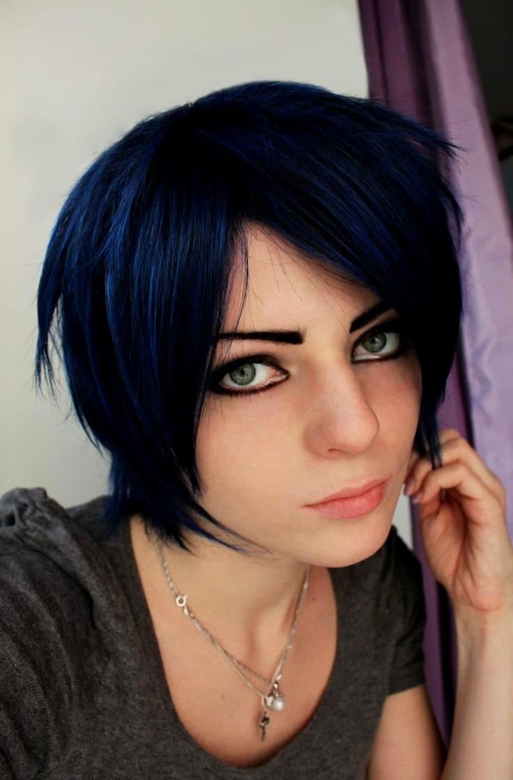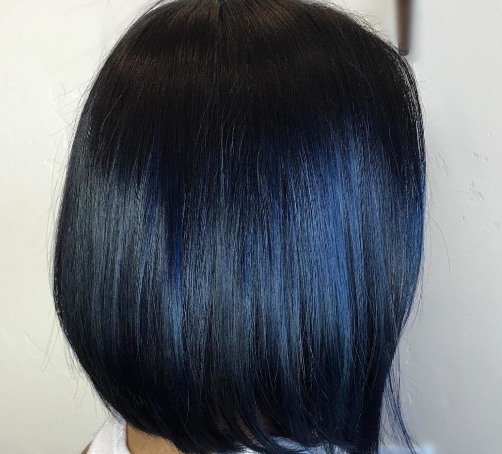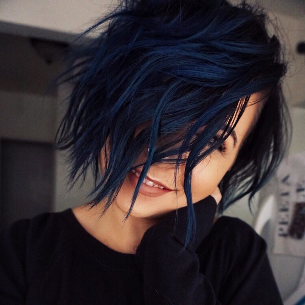 Blue-black hair color, perfect for a short haircut pixies or garzon. If your hair is a little longer, then the classic square, as well as ragged bean - ideal for you. Here you are free to choose whether your hairstyle will be with or without bangs. In any version, the blue-black color will look great on such hair.