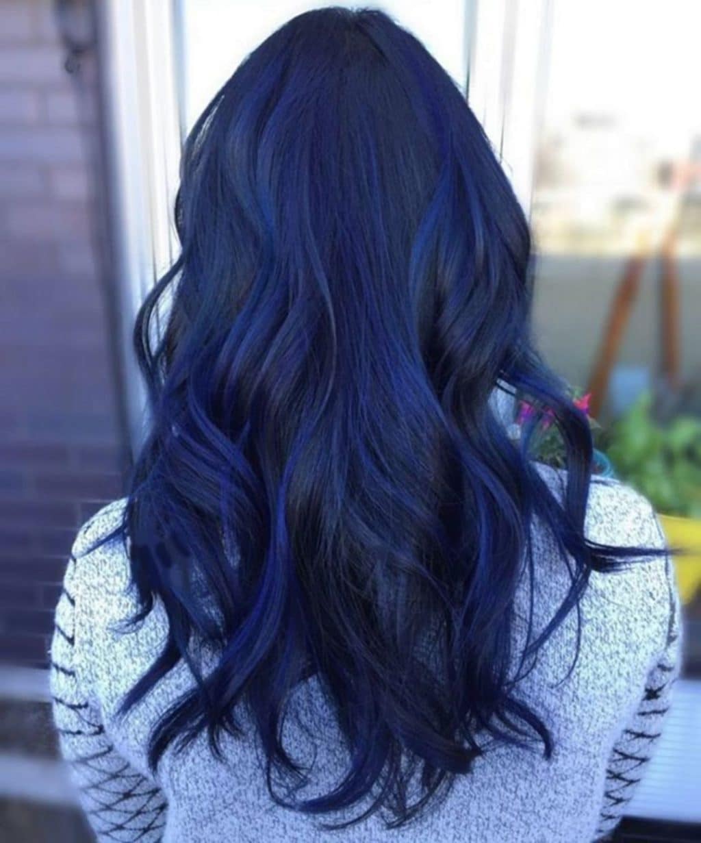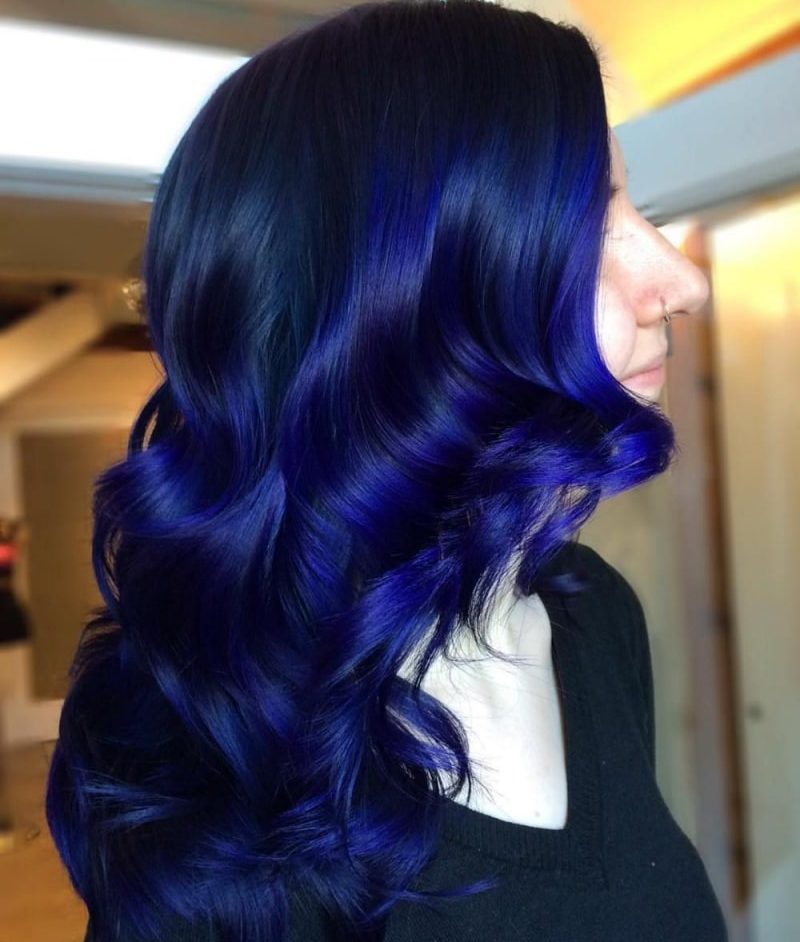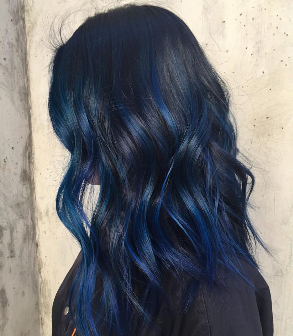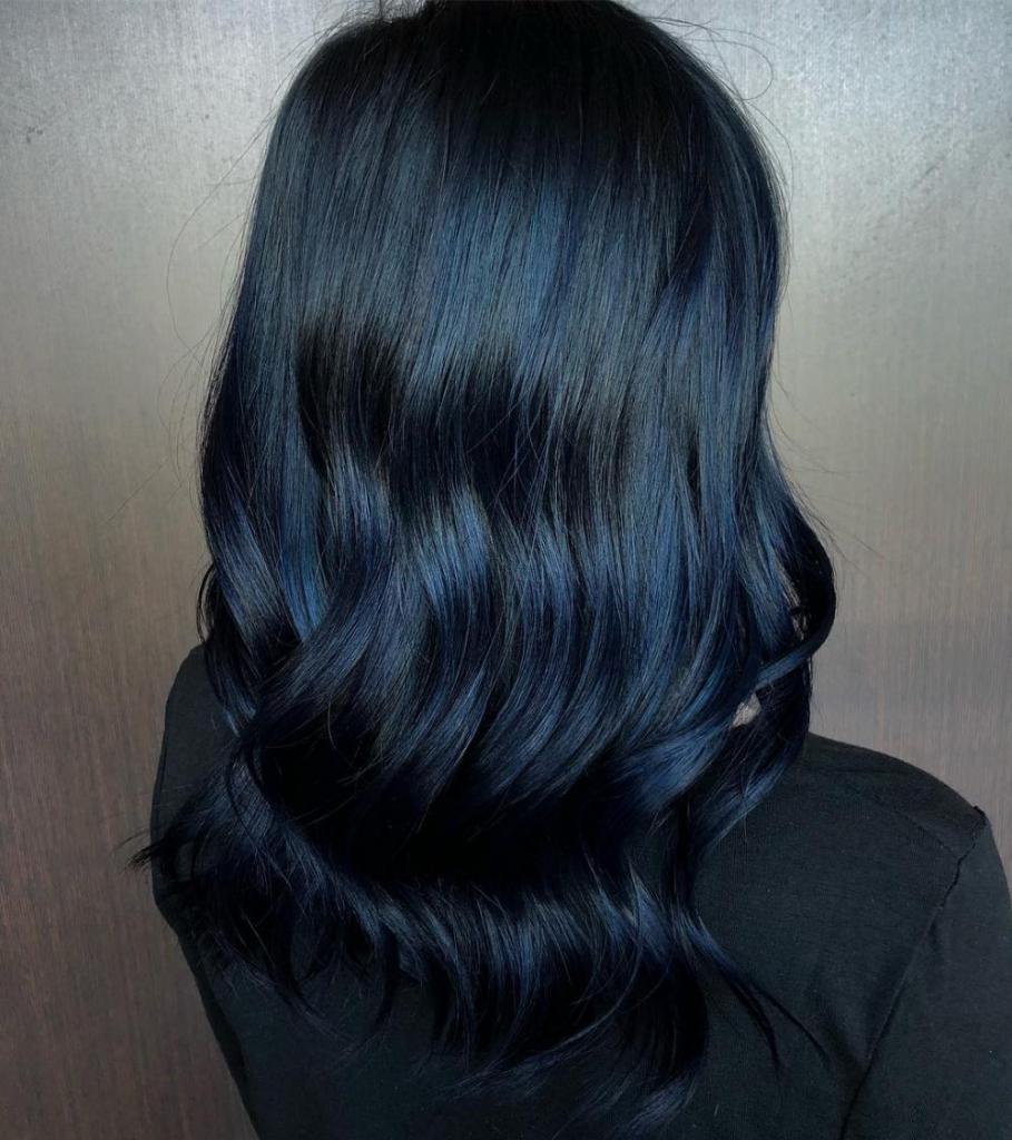 This color looks especially chic on long hair.. After all, only at a great length, the blue-black color opens to full, striking with the depth of a blue tint. If you want to create a similar masterpiece on long hair, then you should turn to an experienced colorist master.