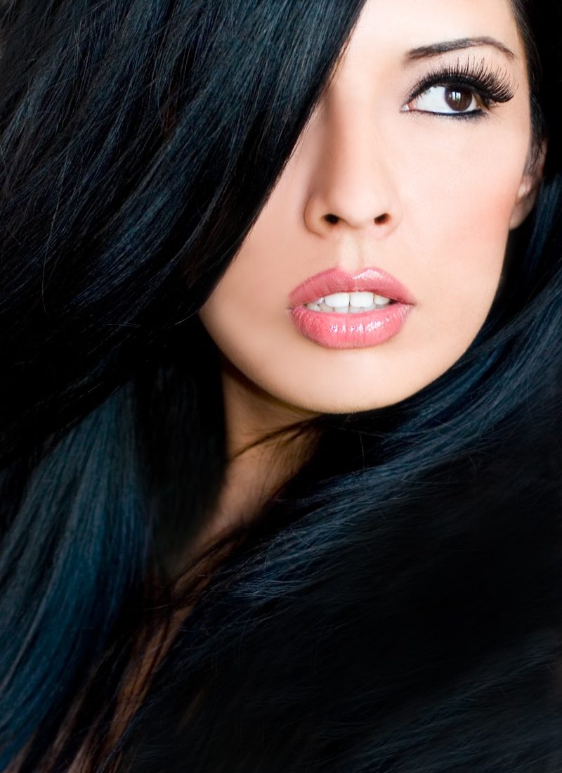 For those girls who have white skin, but do not want to lose hair length, it is better to choose a blue-black color with a bluish overflow. This tone is colder and more saturated. It perfectly shades white skin, and also helps to make the look more expressive.