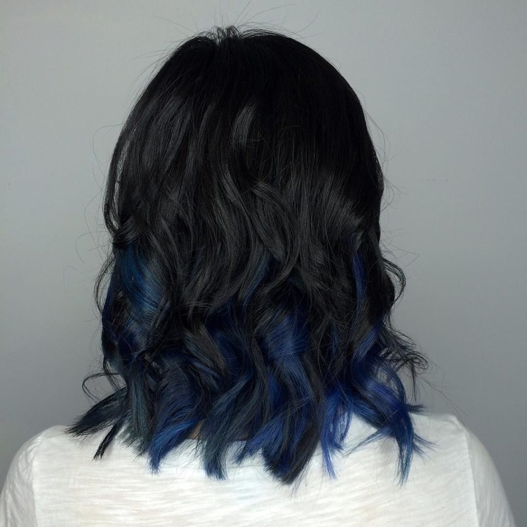 If standard dyeing in blue-black hair is not enough for you, then you can pay attention to the longitudinal coloring, ombre, hut, as well as highlighting. Such staining techniques will create truly true masterpieces of the combination of blue and black.