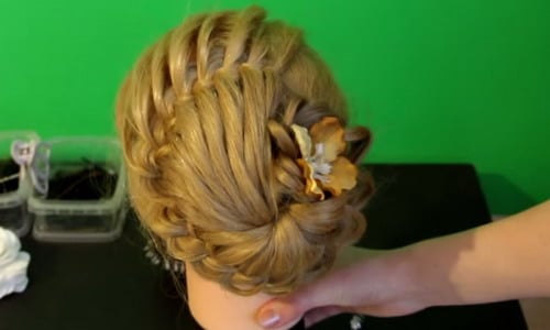- Fix the flower braid with hairpins, even with a shiny decor.
