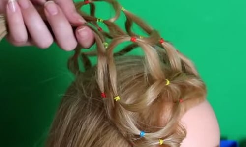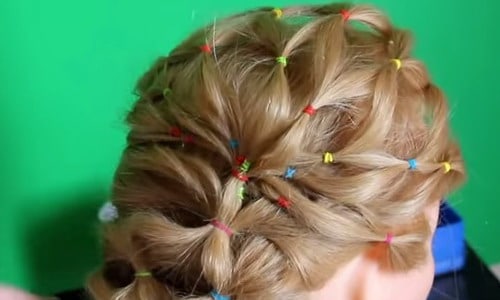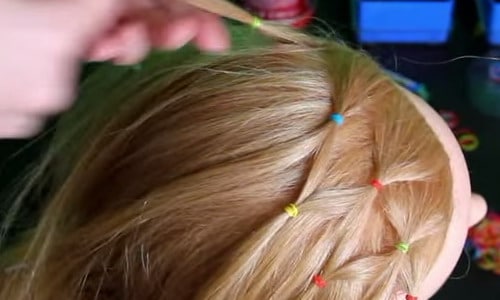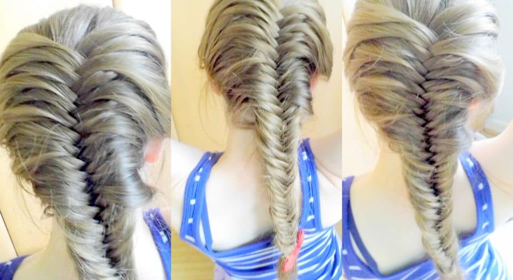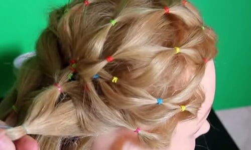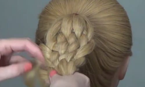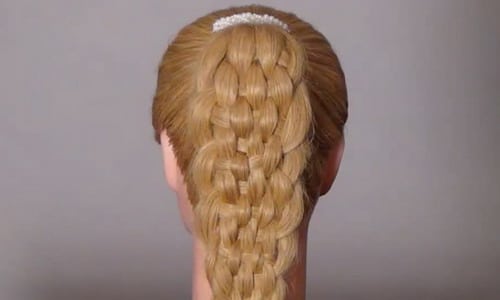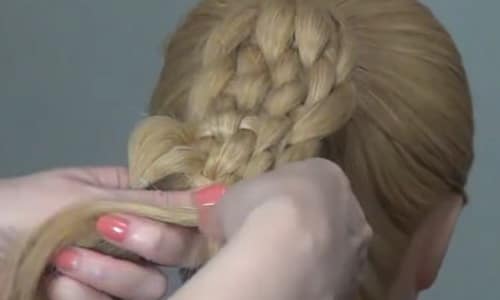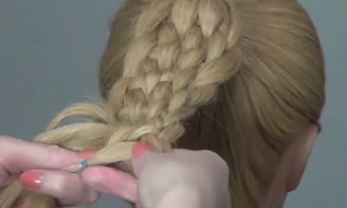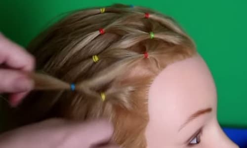 - After you need to repeat steps 2 and 3 until you finish the braid to the end. When you finish the braid to the neck, then go to weaving a regular braid of three links. Fasten the braid with an elastic band or a beautiful, colorful bow.