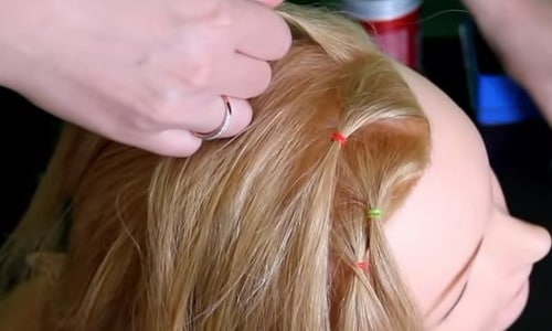 - After you need to divide them into 2 parts in a horizontal way. You need to divide the hair so that the separation line is at the level of the beginning of the ears.