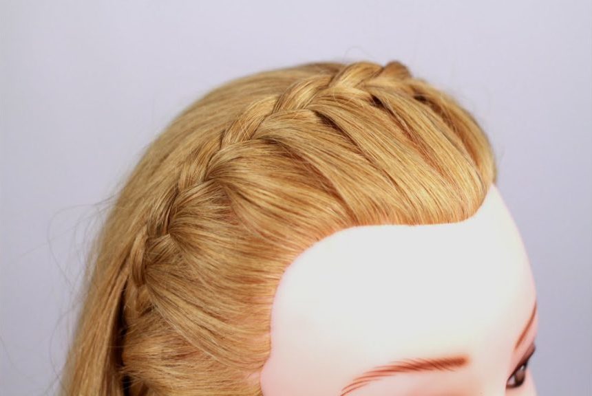 - Weave in this way the braid, which eventually forms a half-bezel. Your direction for weaving from one ear to another.