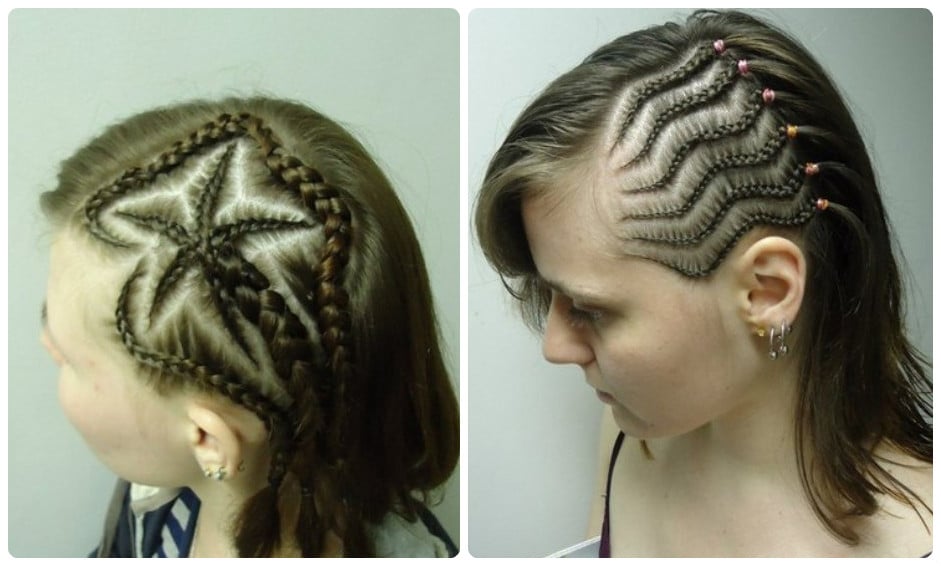 - You can experiment by dividing hair into different zones. You can braid pigtails only on one side and leave loose hair on the other. And you can braid the braids with a pattern.