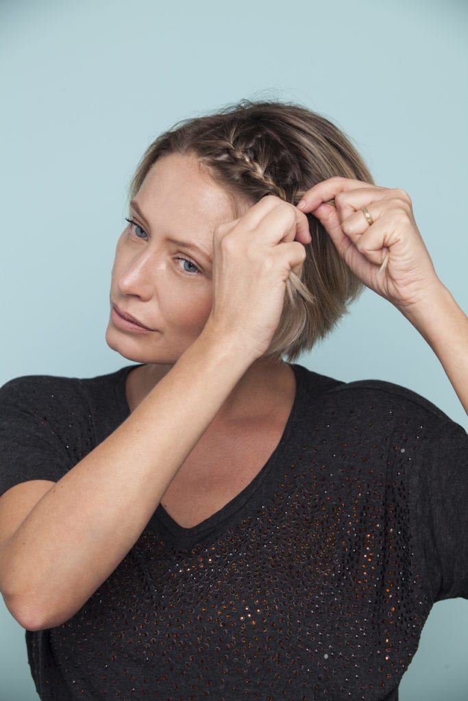 - Divide the hair into partings and begin to braid small, tight pigtails in turn.