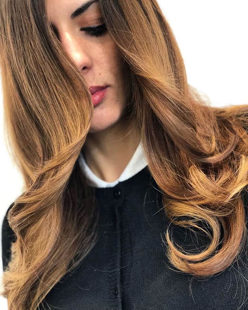 Amber nut combines notes of copper, chestnut, as well as light tones of walnut. Thanks to this mixture, amber nut is suitable for any color type of a girl, but it will look especially good on owners of freckles and light brown eyes.