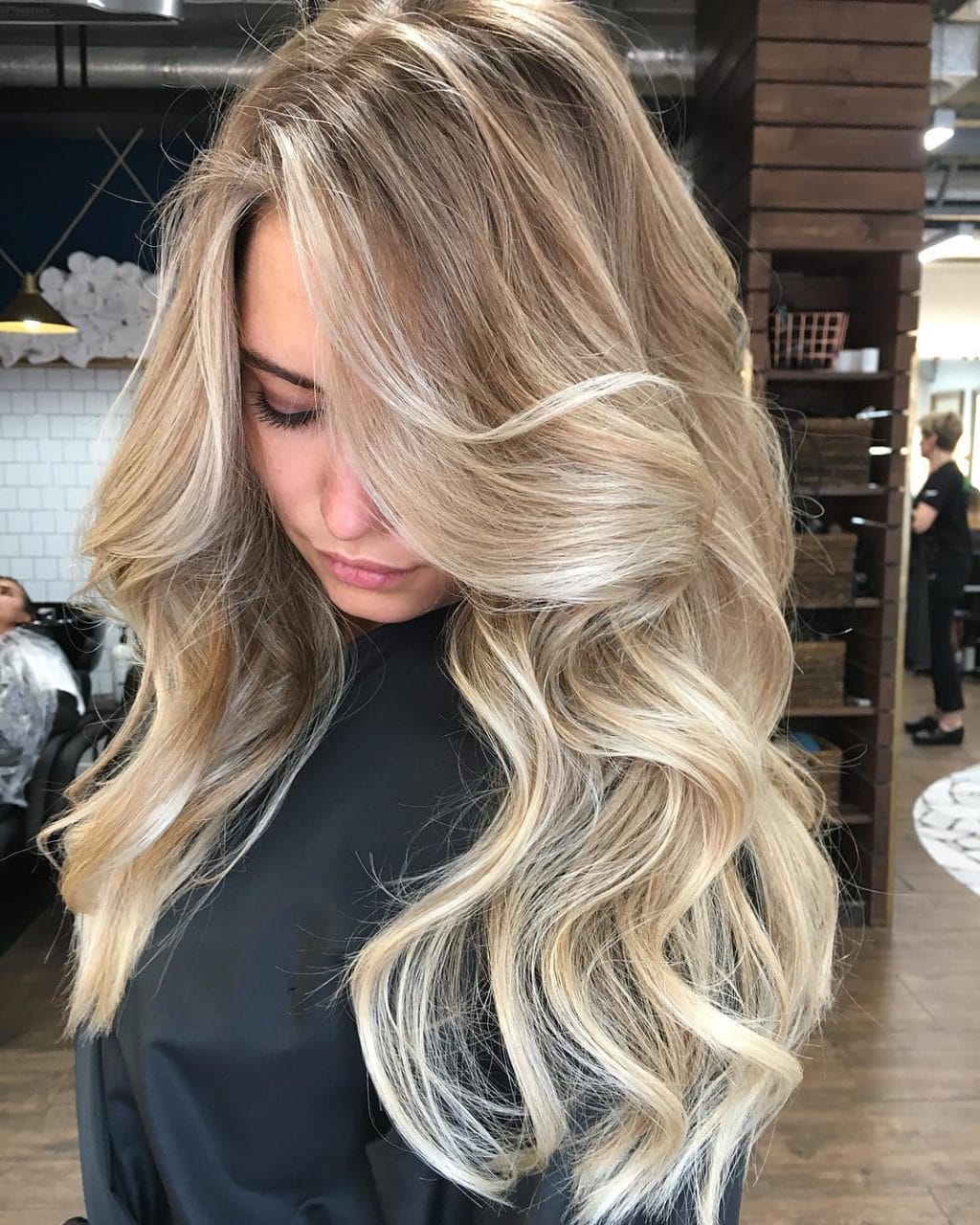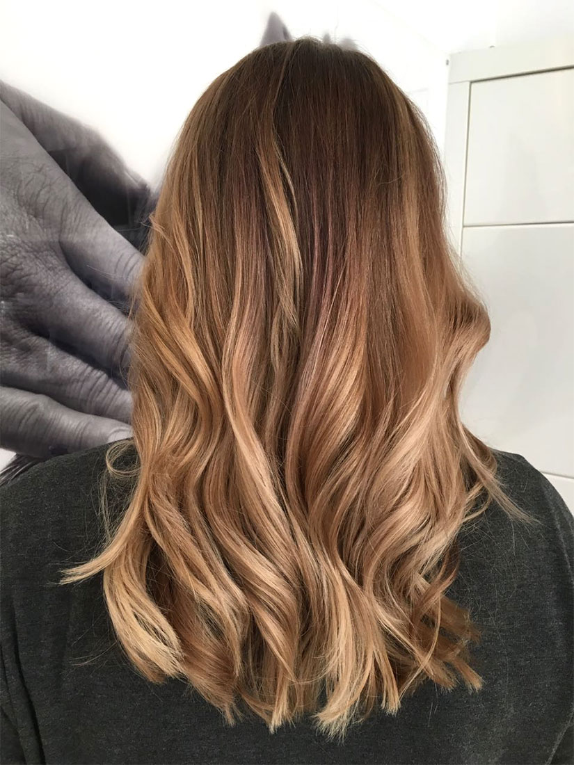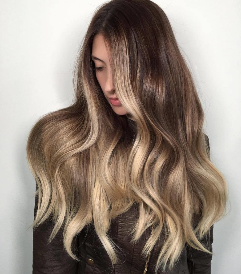 Classic balayazh means by itself dyeing brown hair in natural shades. Such as wheat, light beige, gold and other light shades. It is not uncommon for masters to pick a pearl blond to dark brown hair, which ultimately forms very beautiful color transitions.