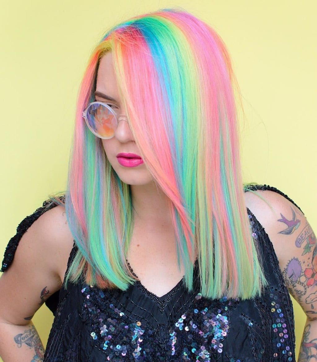 Neon dyeing is perfect for any length of hair. Short, medium or long. In any case, the coloring looks original and spectacular.