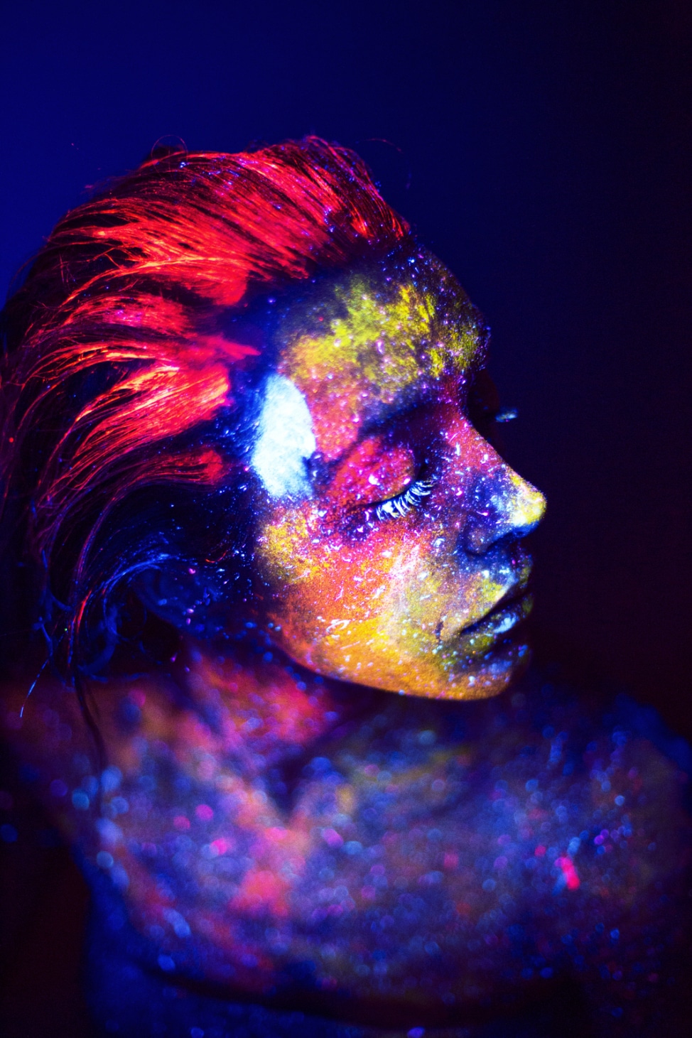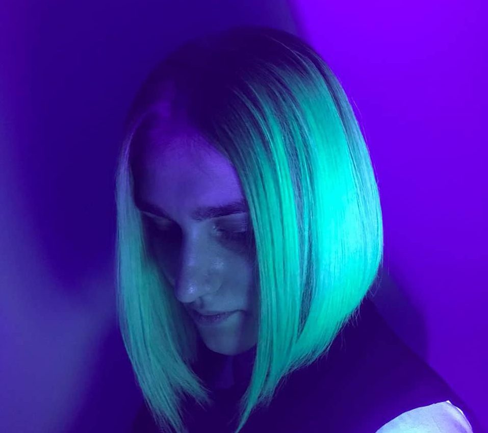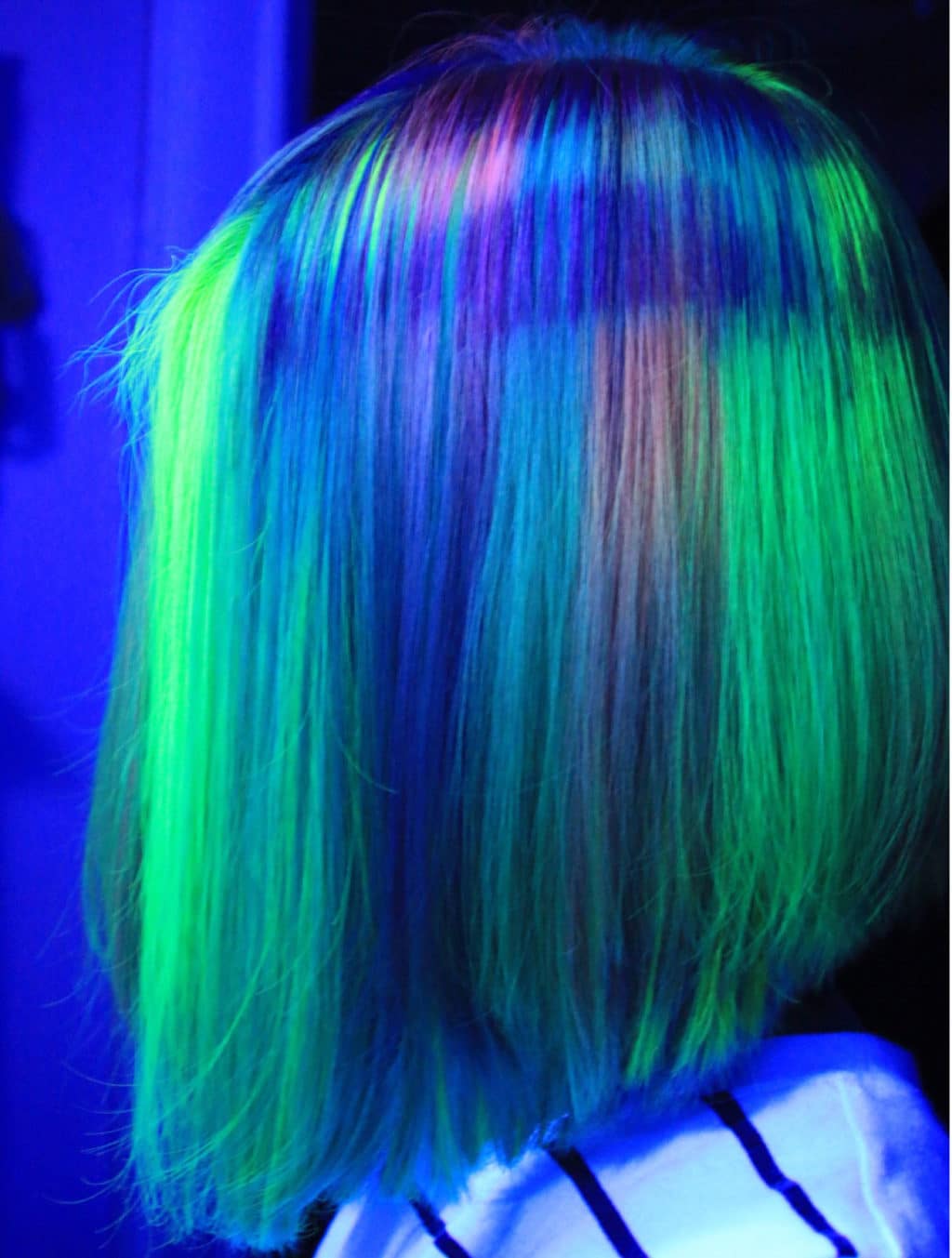 Neon dyeing does not stain hair as much as regular dye. In its property, it is similar to the color sprays used in the stencil technique, only with the difference that this paint glows in the dark.
