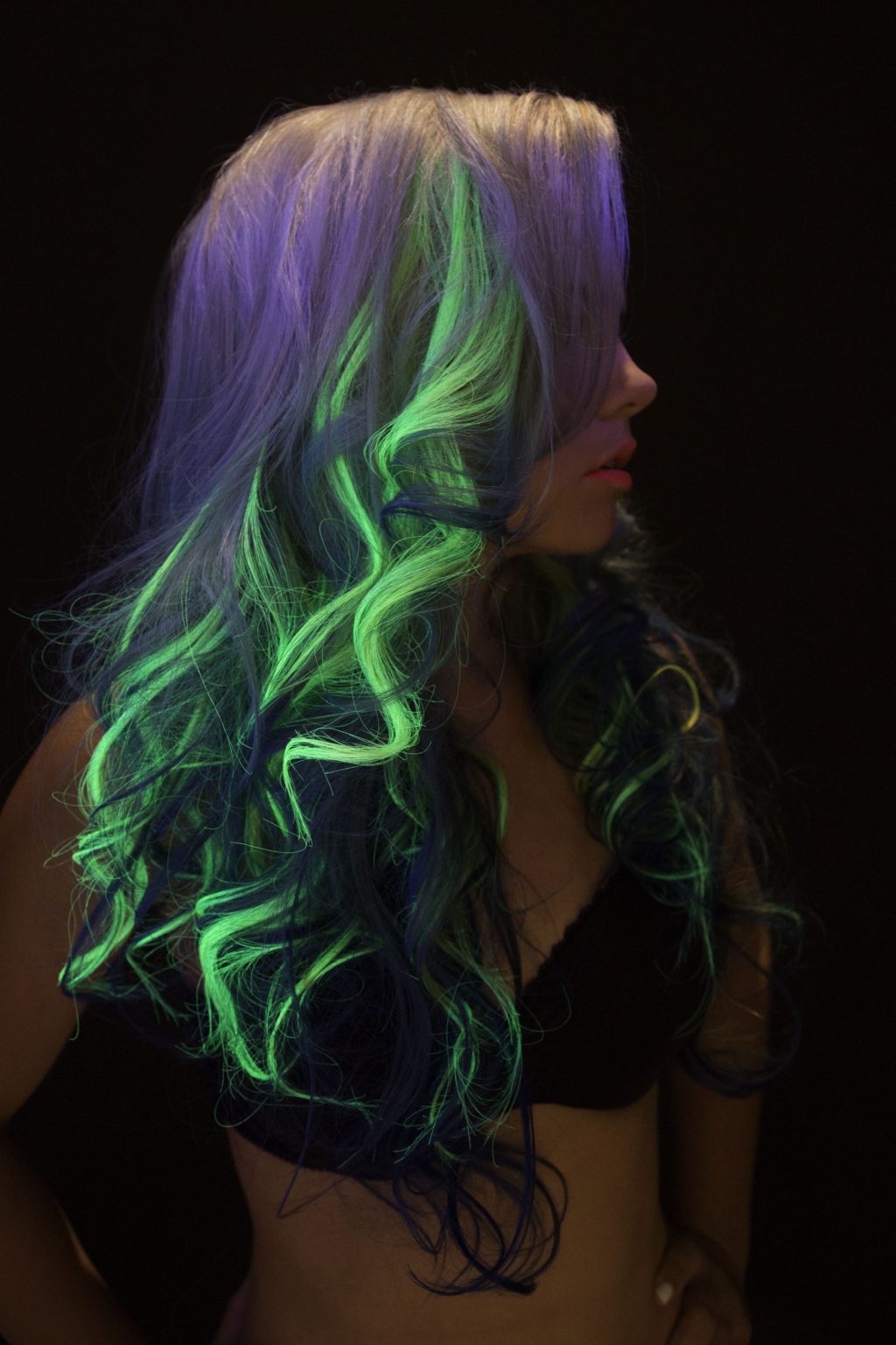 At night, in the twilight or in the ultraviolet, your hair gets a fantastic color. Strands or all hair begins to glow soft, but bright fluorescent, which will be far visible in the dark.