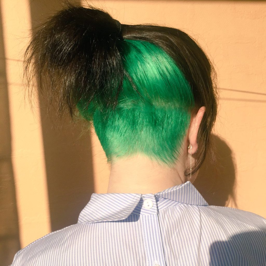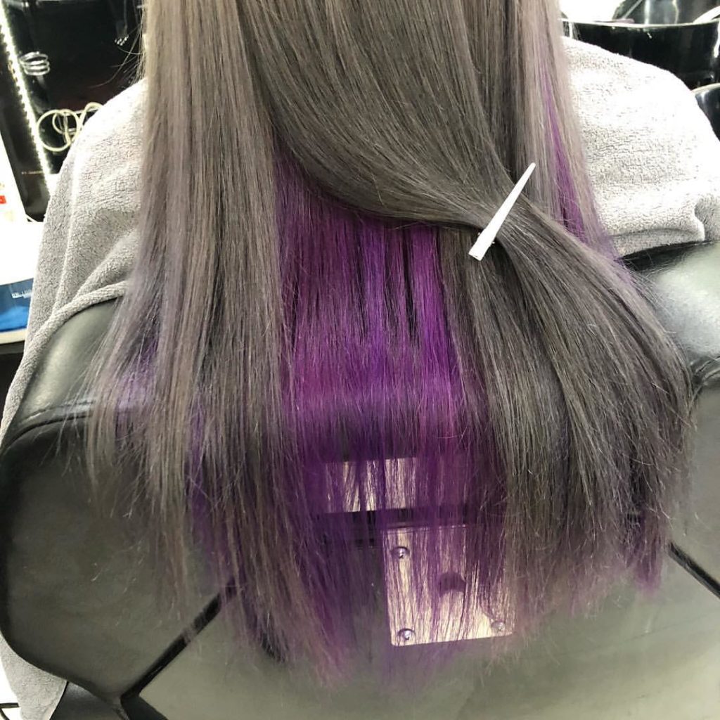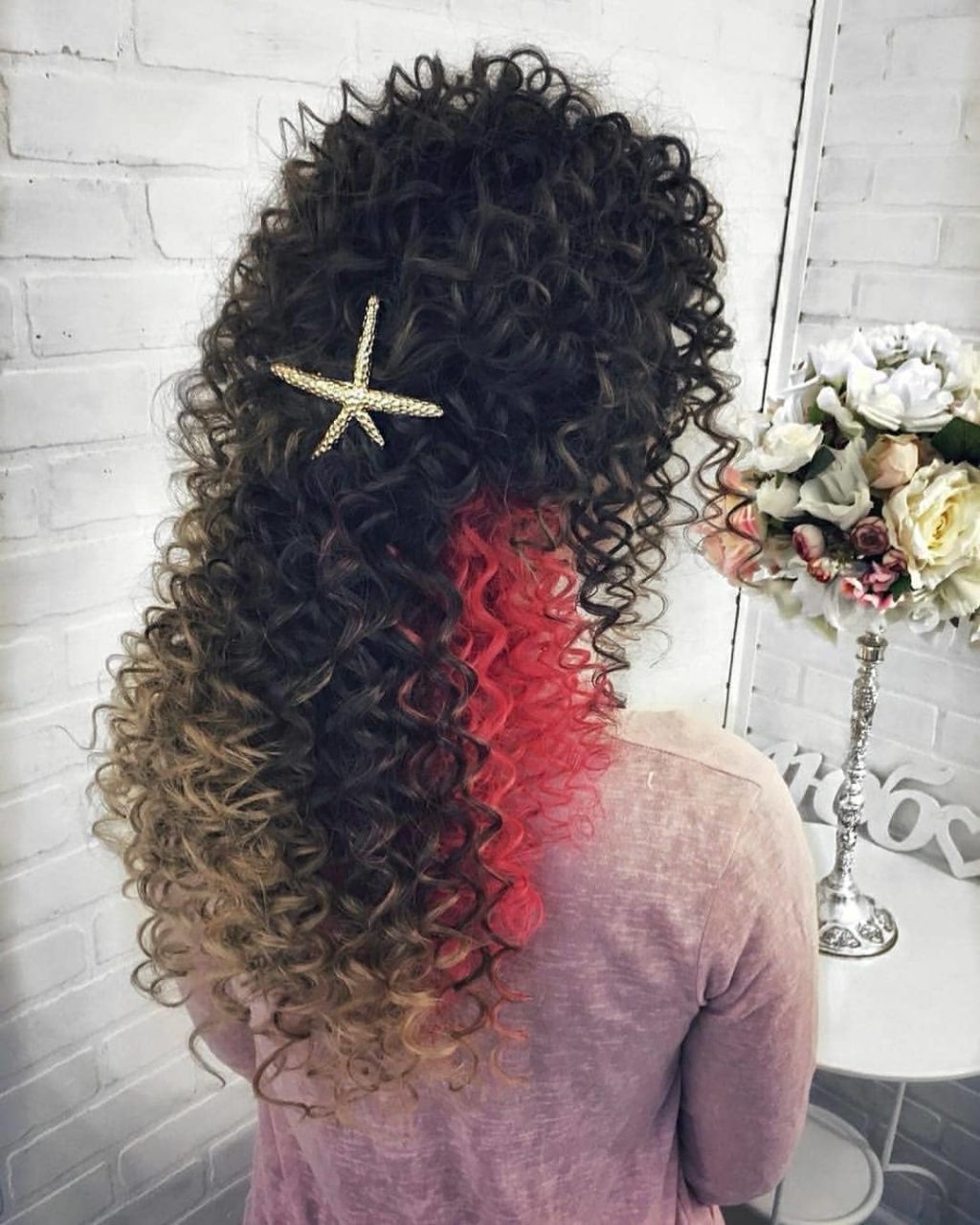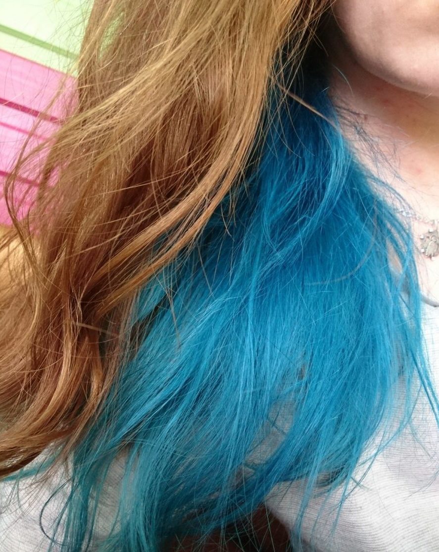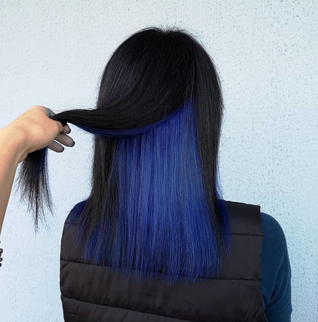 Hidden hair coloring dyes the lower occipital part of the hair, in different bright colors. It can be, like one bright color, or a set of multi-colored strands. After all, the main advantage in this type of coloring is that any crazy colors will not be visible immediately, but only when you yourself want it.