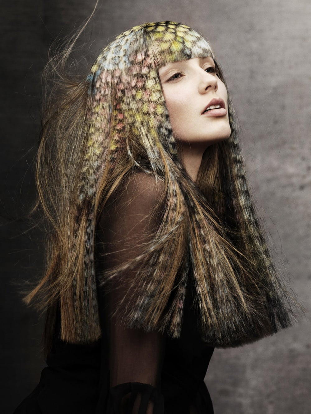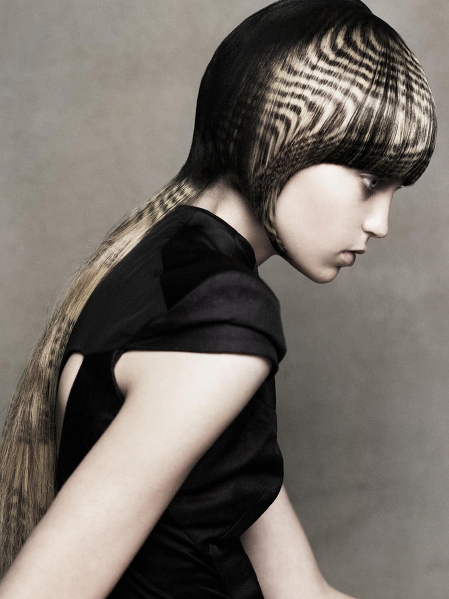 This species also has a different name - futuage. Thanks to the special stencils through which the master dyes your hair, a very realistic result of the drawings is obtained. It can be various drawings, from real masterpieces to simple geometric shapes and abstract patterns.