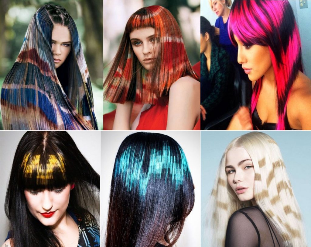 Any patterns are created on the hair using a colored spray that quickly rinses off your hair after the first wash. But some masters may use spray paint, so that the result lasts much longer than ordinary staining.