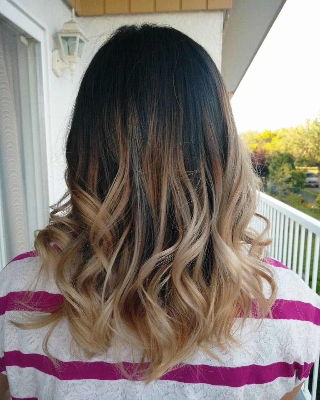 California highlighting is able to emphasize the native dark hair color, making it brighter and more saturated. And in another embodiment, it can lighten the middle and ends of the hair, and leave the roots and parietal zone in a dark color.