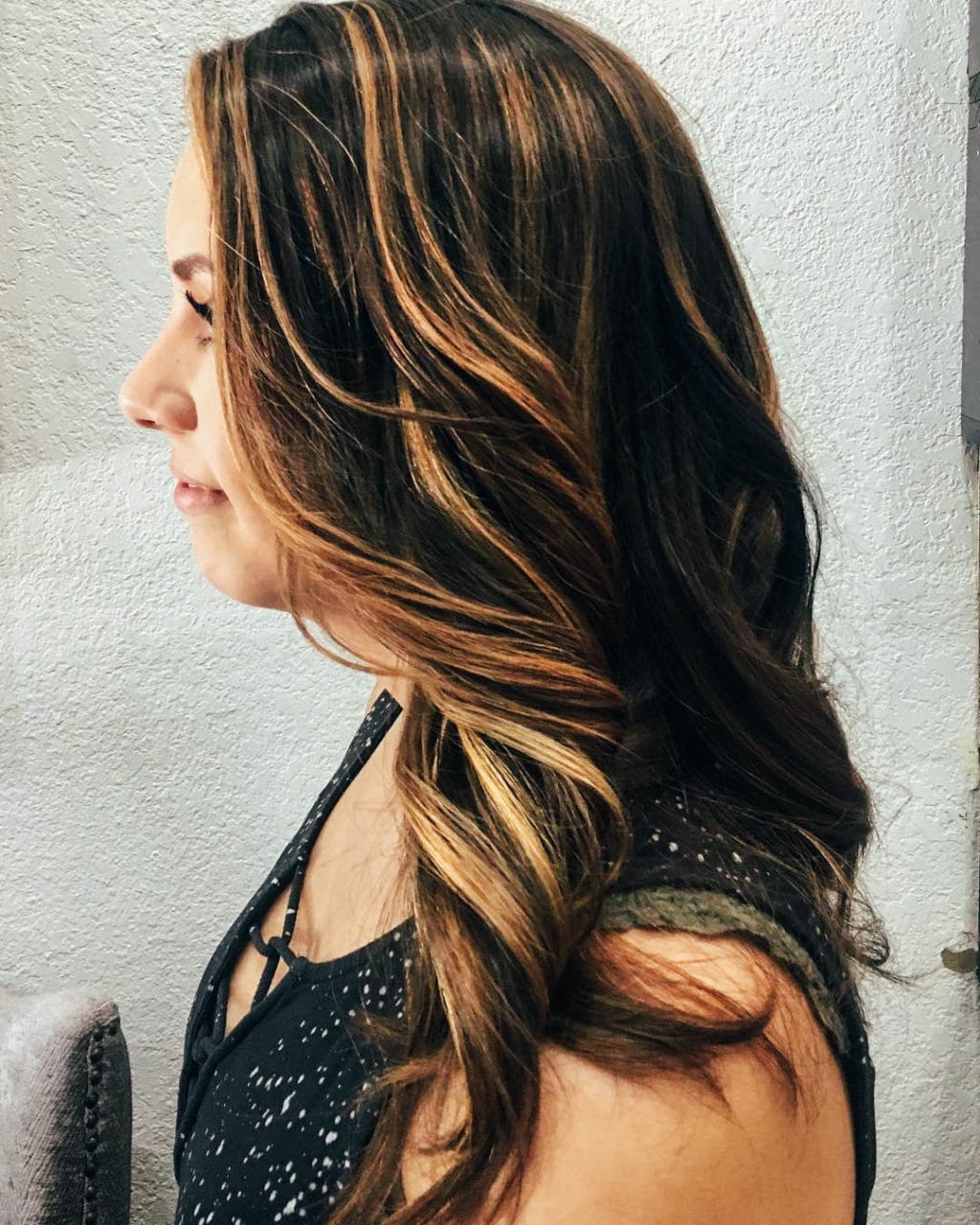 For dark hair, California highlighting offers rich shades of copper, warm caramel, amber, cognac, chocolate and bronze.. Again, any of the proposed shades is selected by an experienced colorist. After all, if you get to a layman, you can thoroughly ruin the whole image.