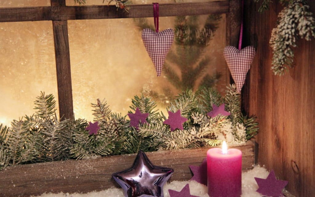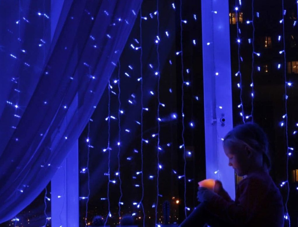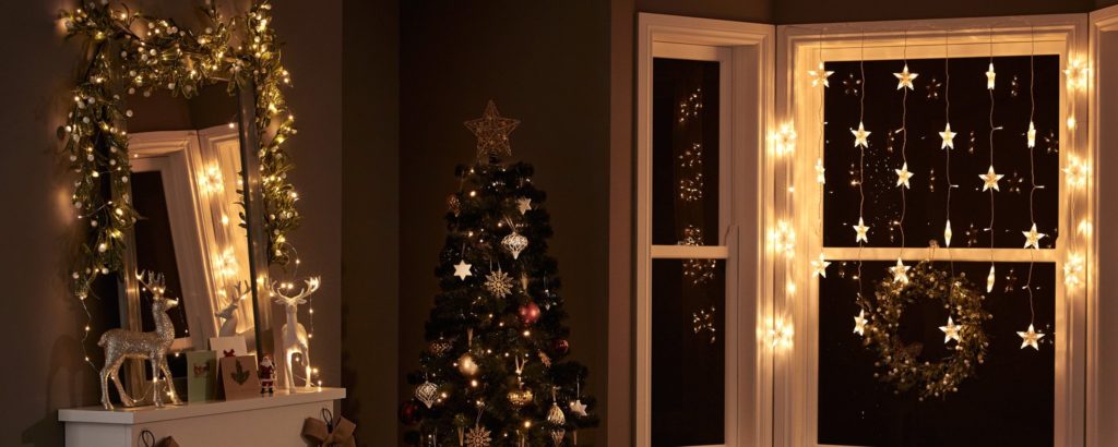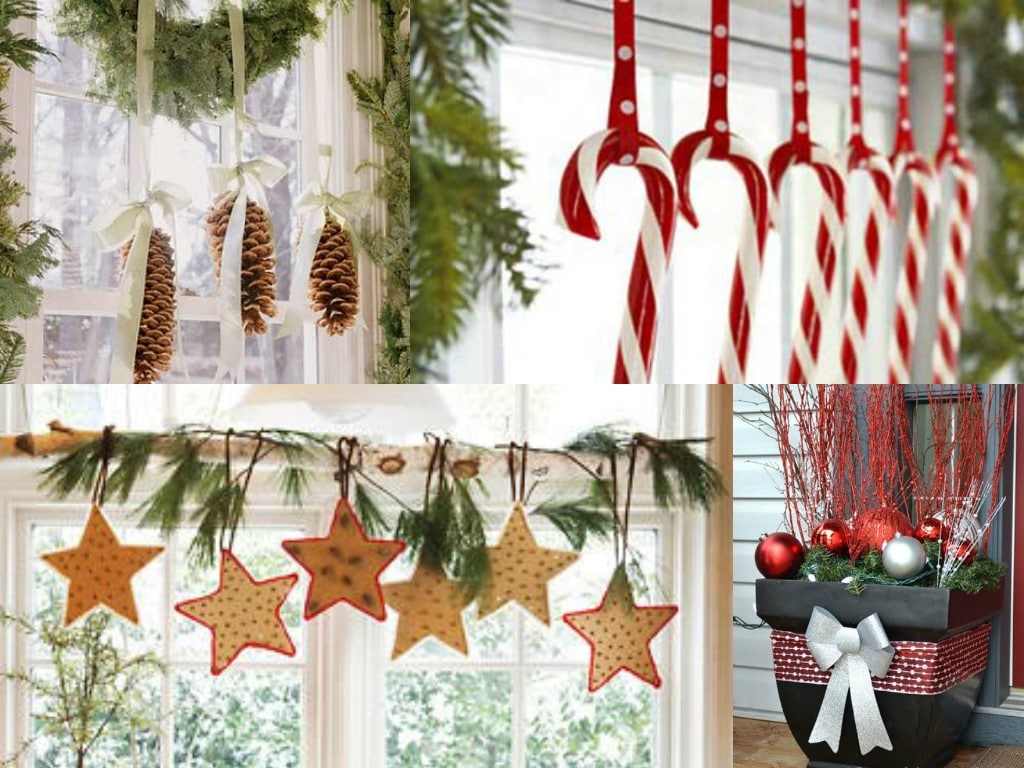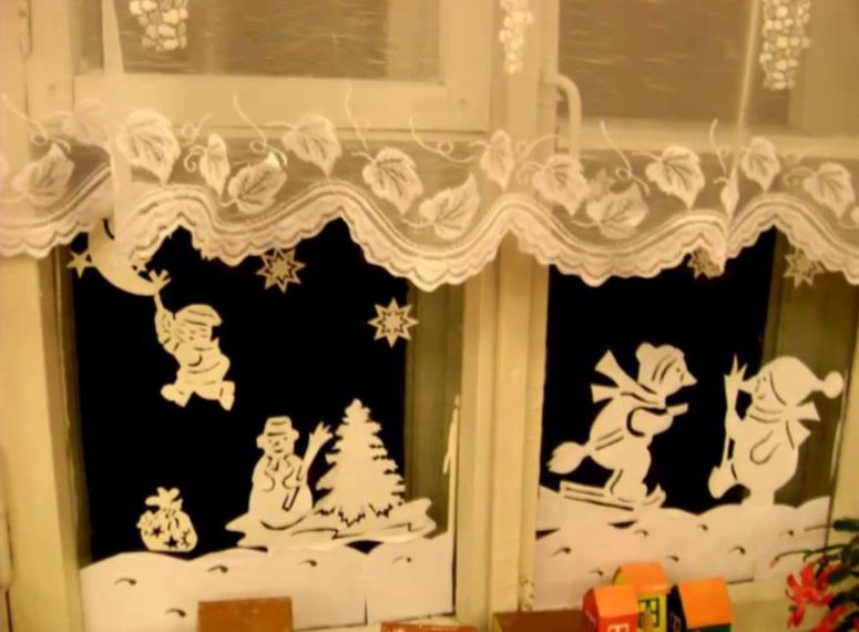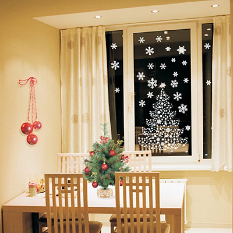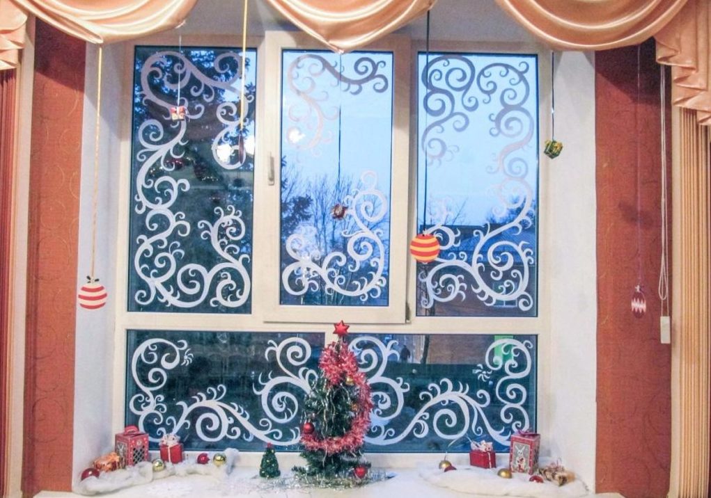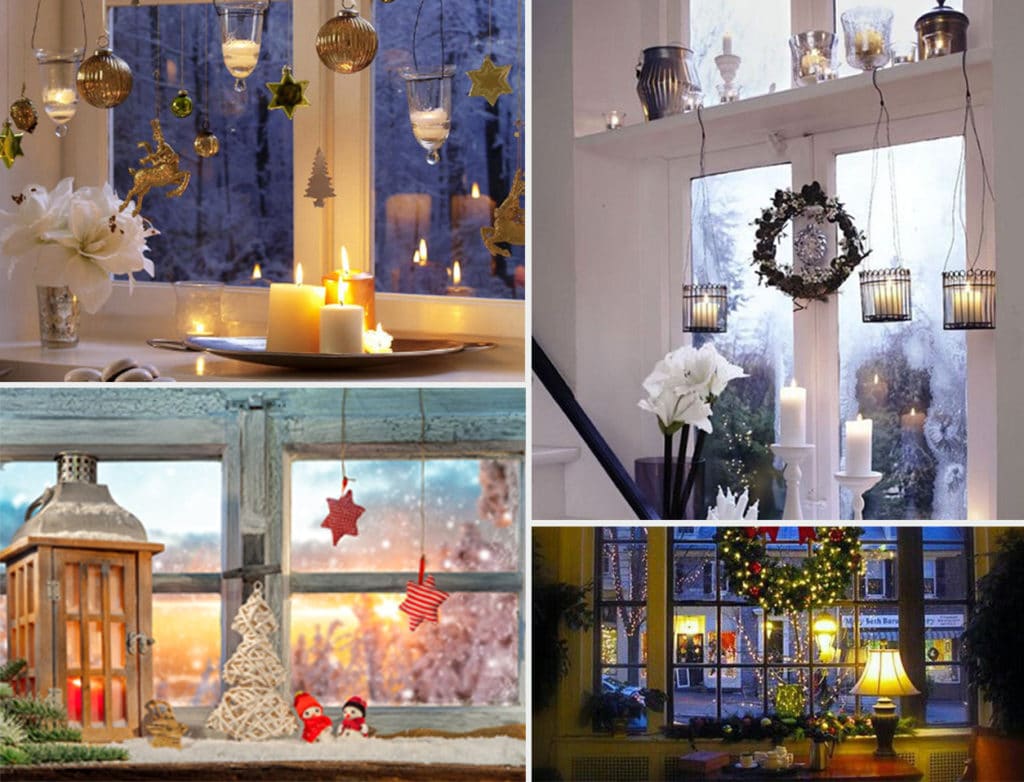 On the windows you can hang vertical garlands, and on the windowsill put candles with the scent of cinnamon or vanilla. Various small decorations can be cones, decorative snowmen, deers, moose, Christmas trees, sweets and other New Year attributes.
