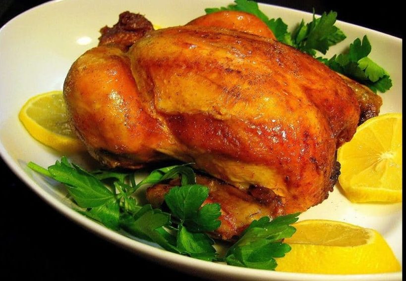 - To make the chicken soft and juicy, you need to take it out of the oven every half hour and drain the liquid that forms inside it. With this liquid, water the chicken on top and continue to bake in the oven.