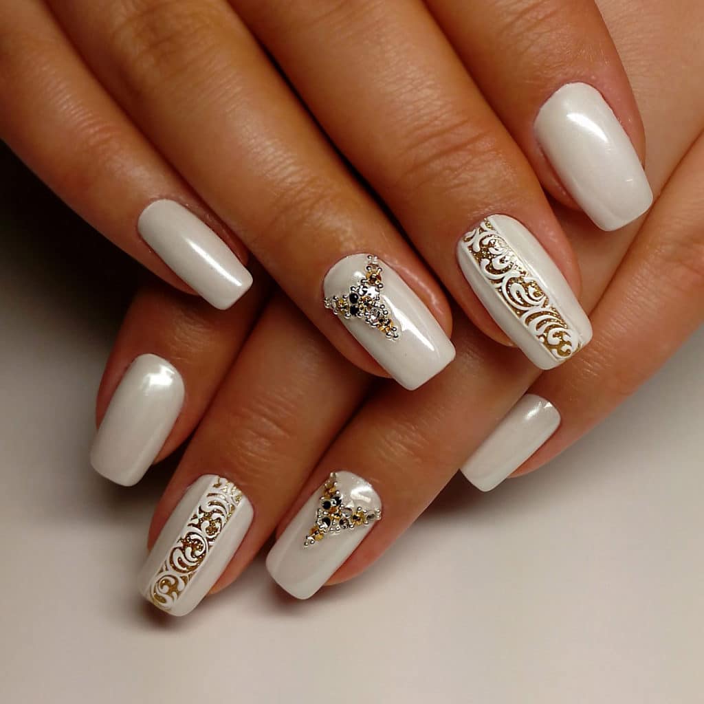 The manicure per year of the White Metal Rat should be done in white, gold, pink, menthol or beige. But the Rat will not be offended if you pick up other interesting ideas for manicure with New Year's merchandise.