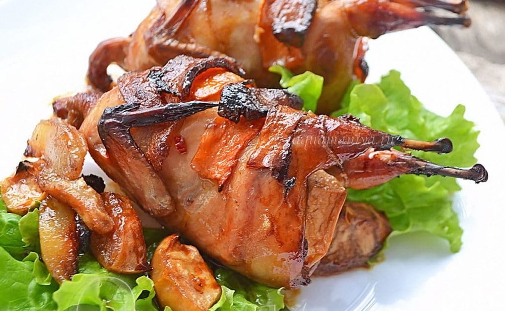 - Then proceed to the preparation of the marinade. Mix olive oil, lemon juice, spices and mustard. Then we put the quail on a baking sheet and pour half the marinade on them. We put the baking sheet in the oven, heated to 180 degrees.