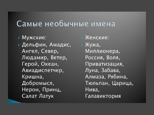 What does “unusual names” mean? Very often, these are well-forgotten old names that have long been disused. Recently, it has become fashionable to call girls old names. Name for boy you can choose here.