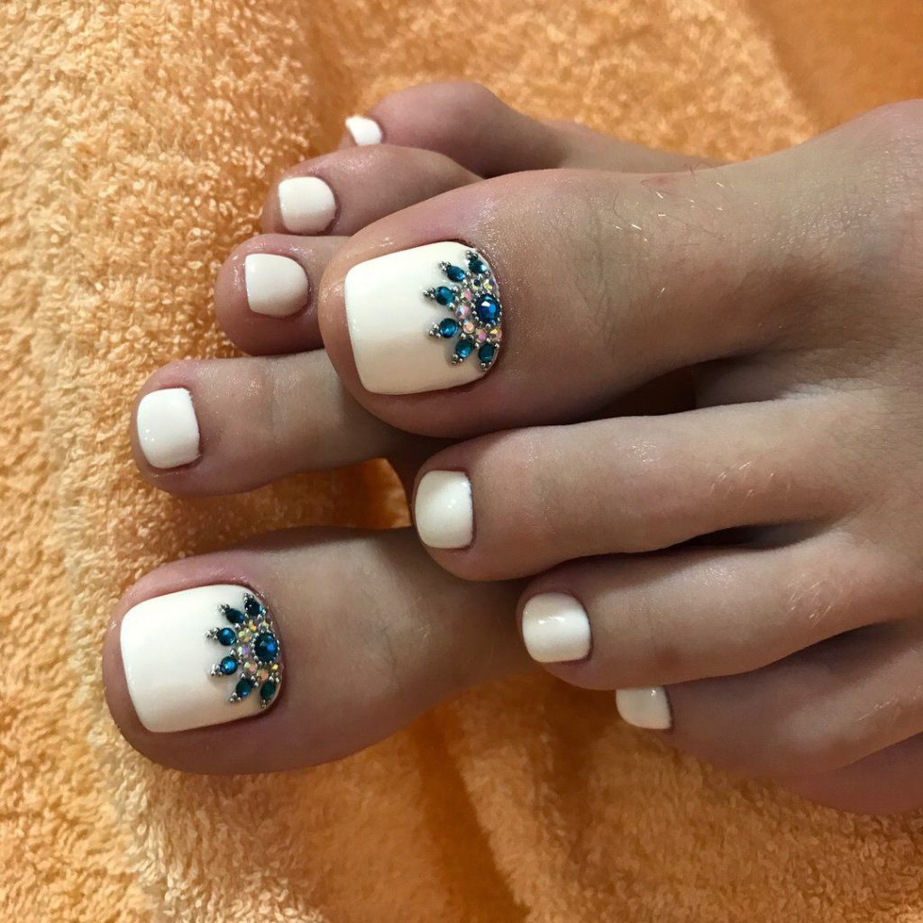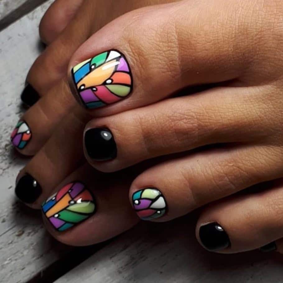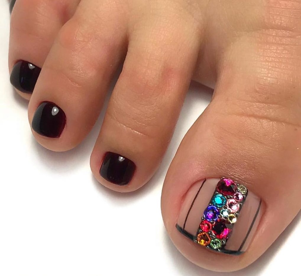 If you are not used to being in the shade, then a bright pedicure is exactly what you need. With such bright, sometimes acidic colors, your pedicure will not go unnoticed. It is perfect for colored dresses or for restrained, plain. In the case of the latter, a bright pedicure will be able to refresh the outfit.