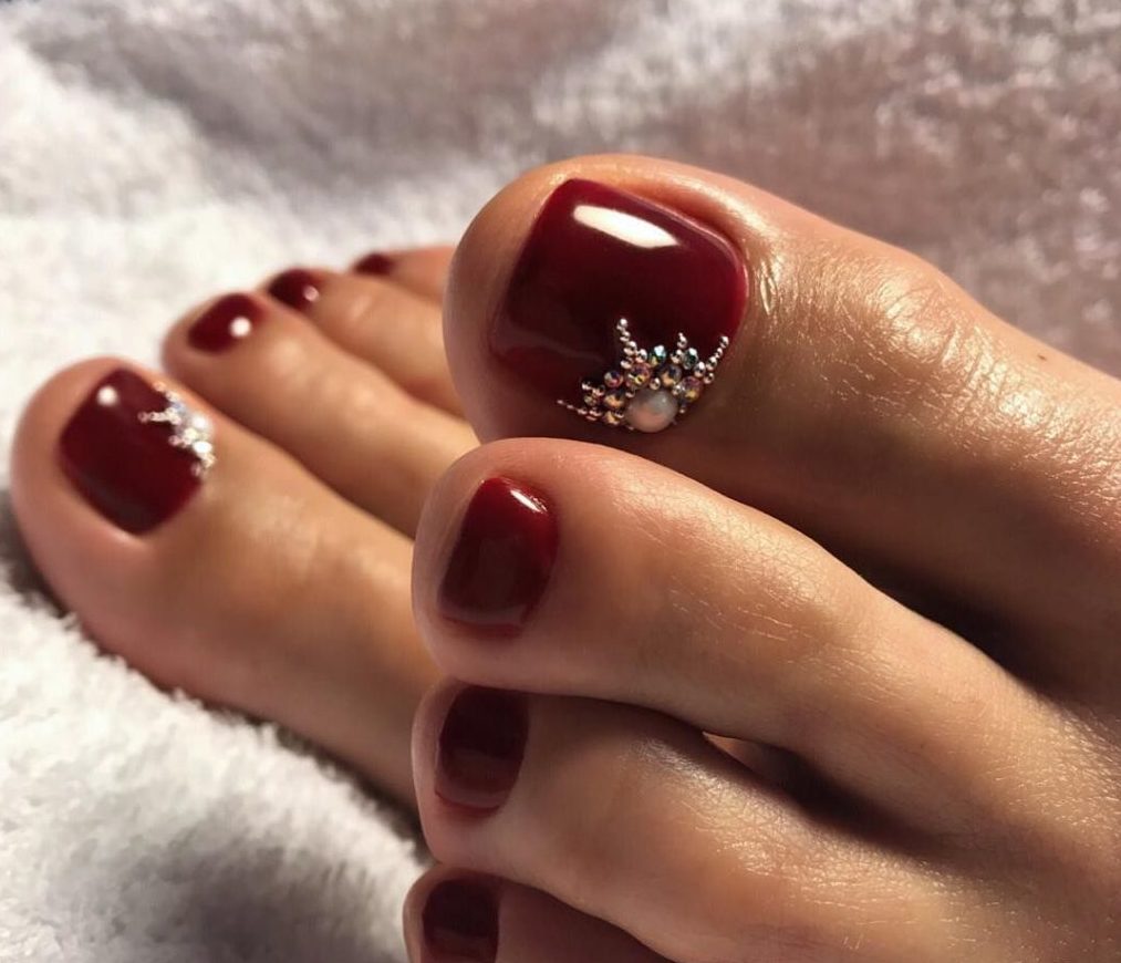 Strict restraint, beautiful elegance - all this can be attributed to the dark pedicure. This color is perfect to complement a dark or red dress, or create a beautiful play of color with a white or light tone of your outfit.
