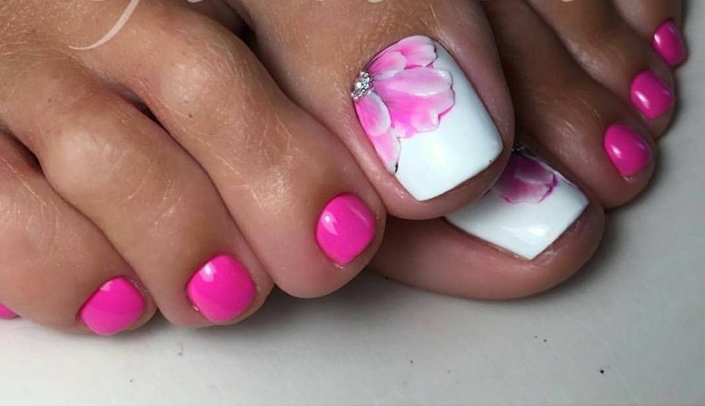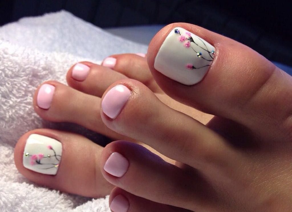 Pedicure with flowers can be both gentle and bright. The main difference here is the flowers that adorn your nails. Flowers can be made with acrylics, rhinestones, sparkles and with the help of other materials.