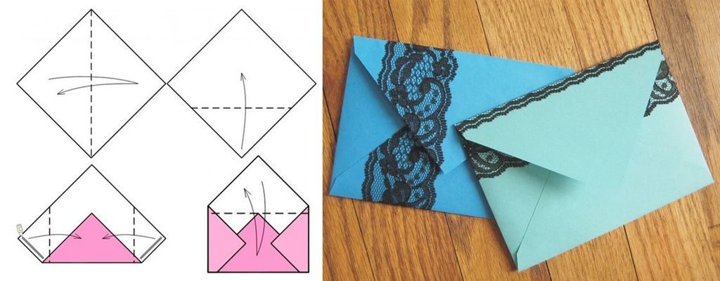 The most important thing you need to successfully decorate an envelope is fantasy. If you have problems with this, use the Internet and select an interesting design from those already invented. For example, by threading a ribbon even in the simplest envelope, you will give it a festive look. You can stick an applique on it or even origami.Envelopes decorated with lace ribbon look very elegant.