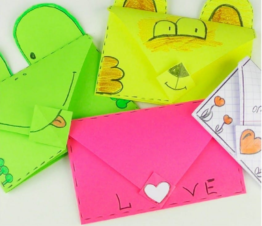 - From one type of colored paper, make a blank for the envelope but do not glue it.