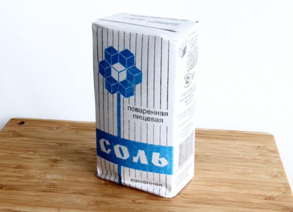 The most popular salt option that currently exists on the market. The standard blue-white pack of thick cardboard has not changed for several decades. Salt is divided into three types: large, small and iodized.