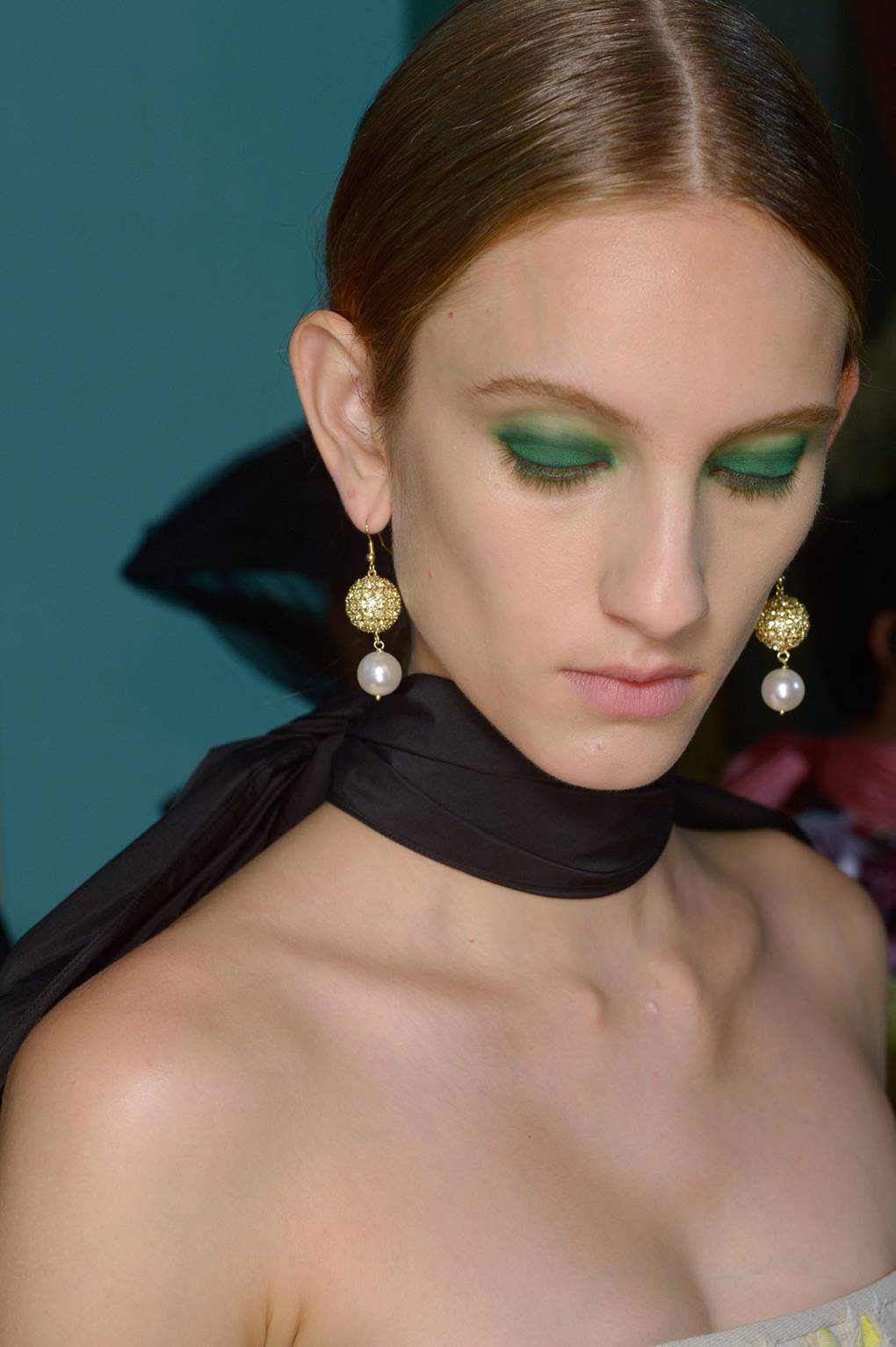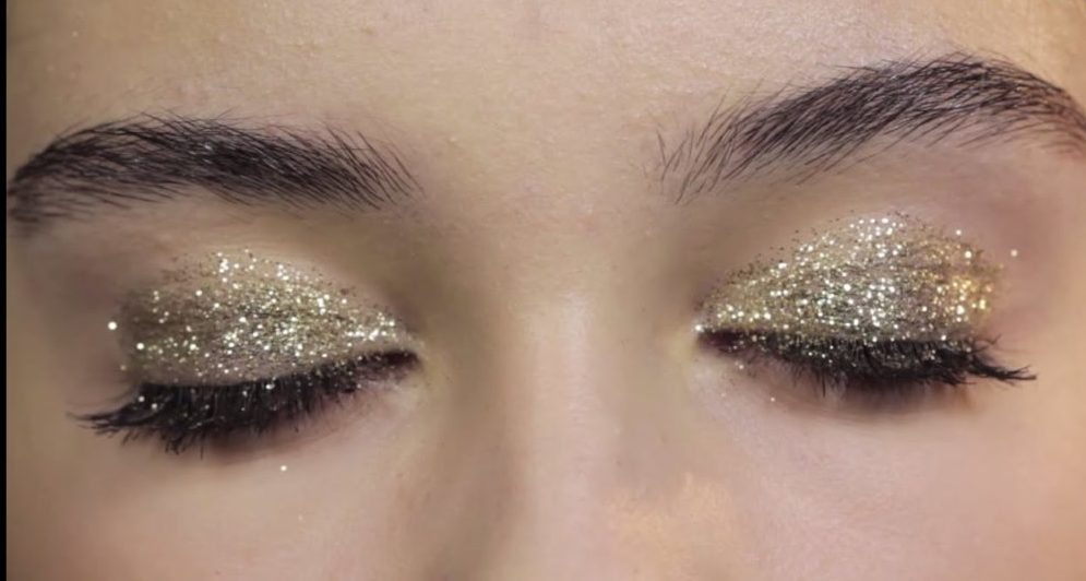 And again, the shadows with glitter will shine on fashionistas this summer. In particular, gold is considered the most fashionable shade of summer. This is how the model was shown at the Valentino show. But here it is not as strict as with other categories and makeup artists recommend using any palette of shadows with glitter.