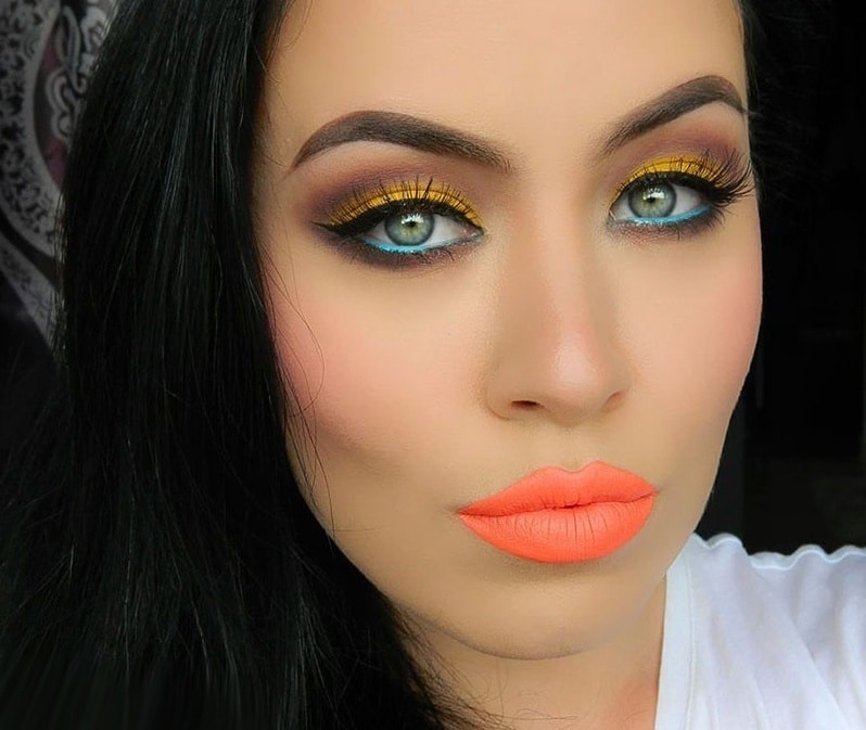 By the way, eyeliner should not have only black color. Here, green, red, yellow and others are considered particularly fashionable colors. Use bold shades of lipstick on the lips and do not forget for the “killer blush”.
