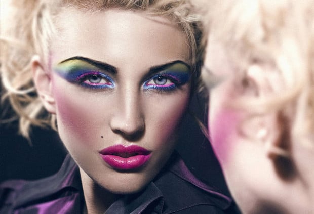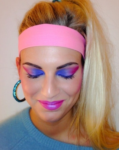 80s makeup is disco style. Bright shades and even neon shades are always present here. You can draw thick and long arrows, use sparkles and mirror gloss.