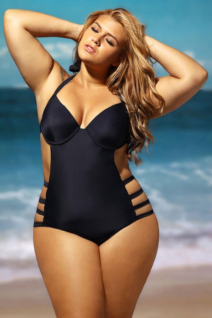 A good choice would be swimsuit plungewhich has a fairly candid cutout. But just such a swimsuit is perfect for such a figure.