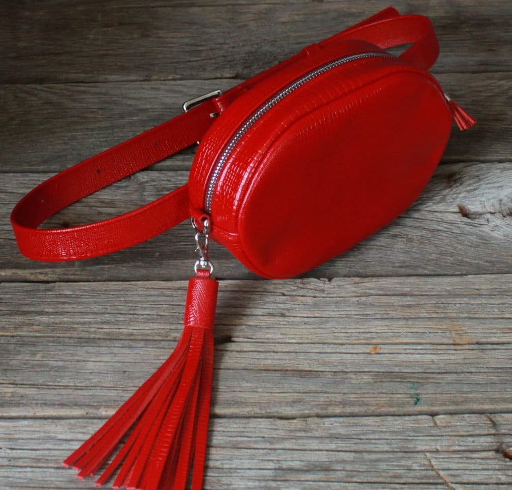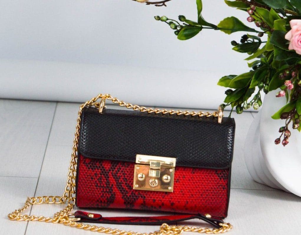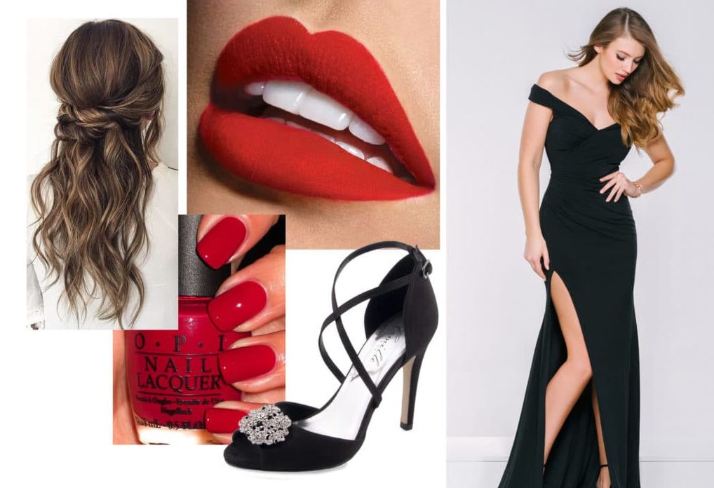 Observe the monochrome image and pick up shoes and bag in red. The same goes for manicure.