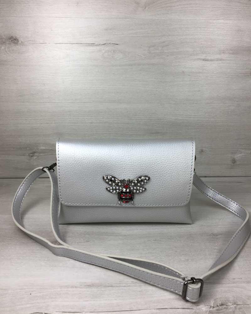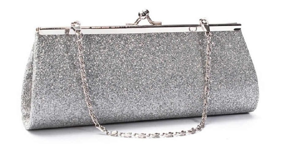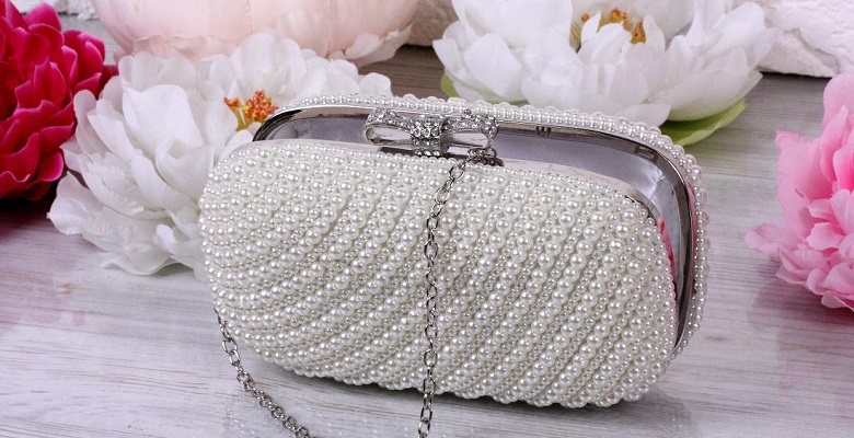 Handbag cold silver with small pearls perfectly shade the dress.
