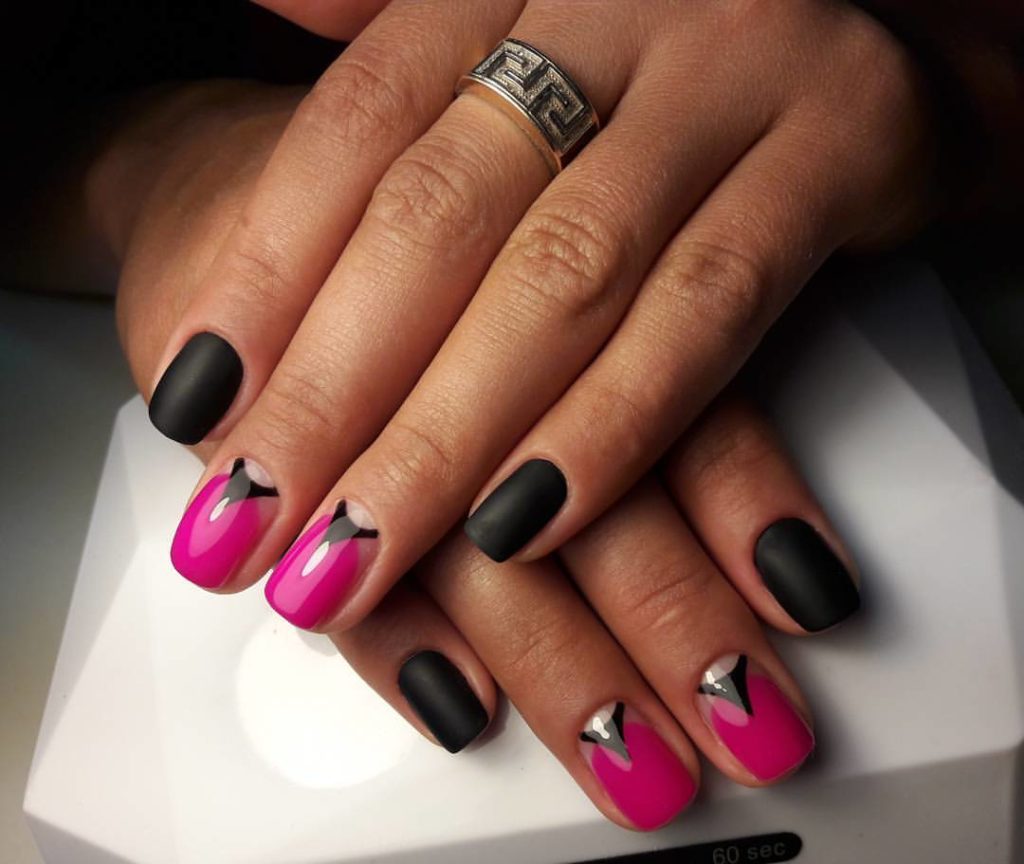 The original solution for manicure will be a double color: pink and black.