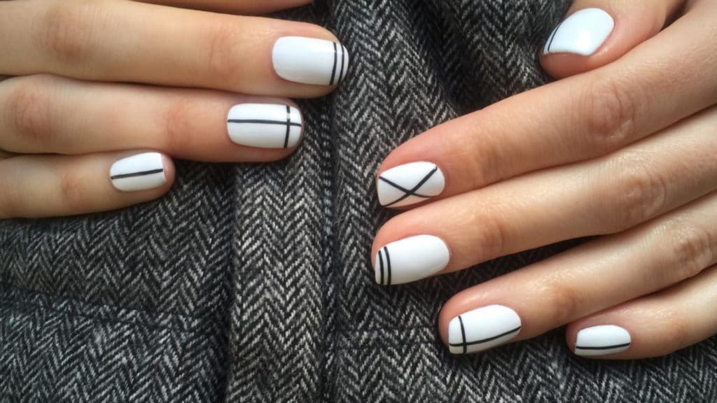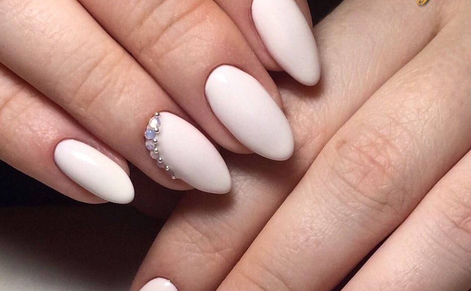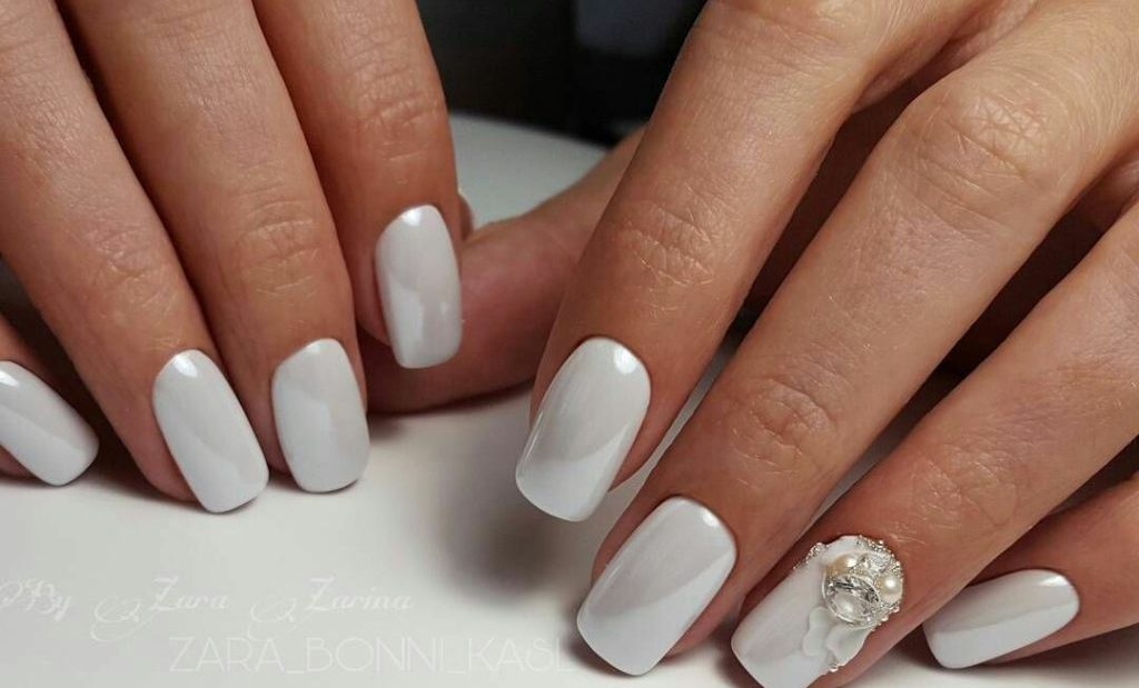 Handbag and manicure in white color.