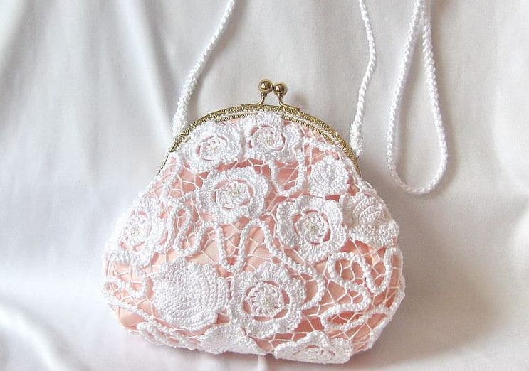 Handbag white lace, small size.