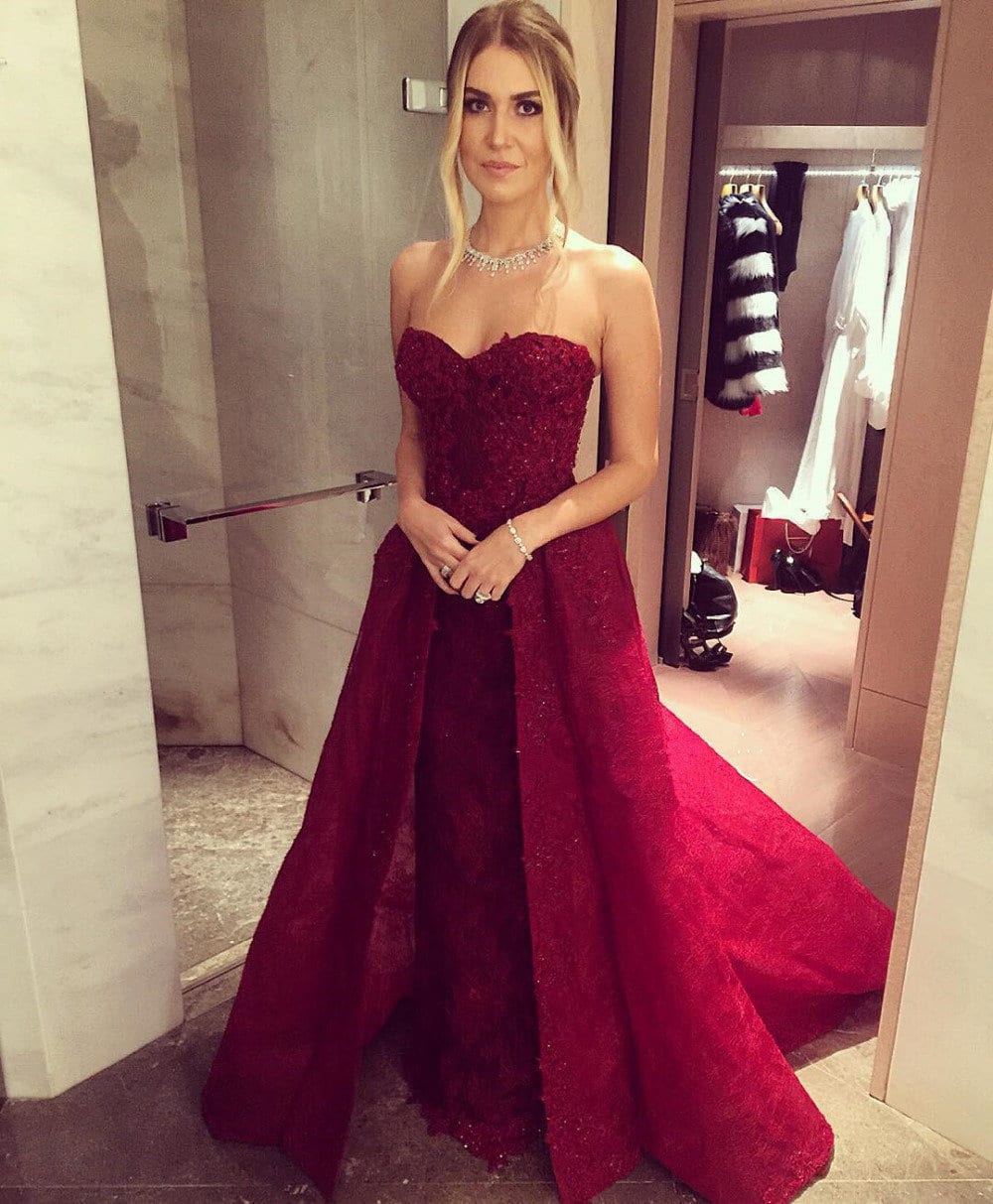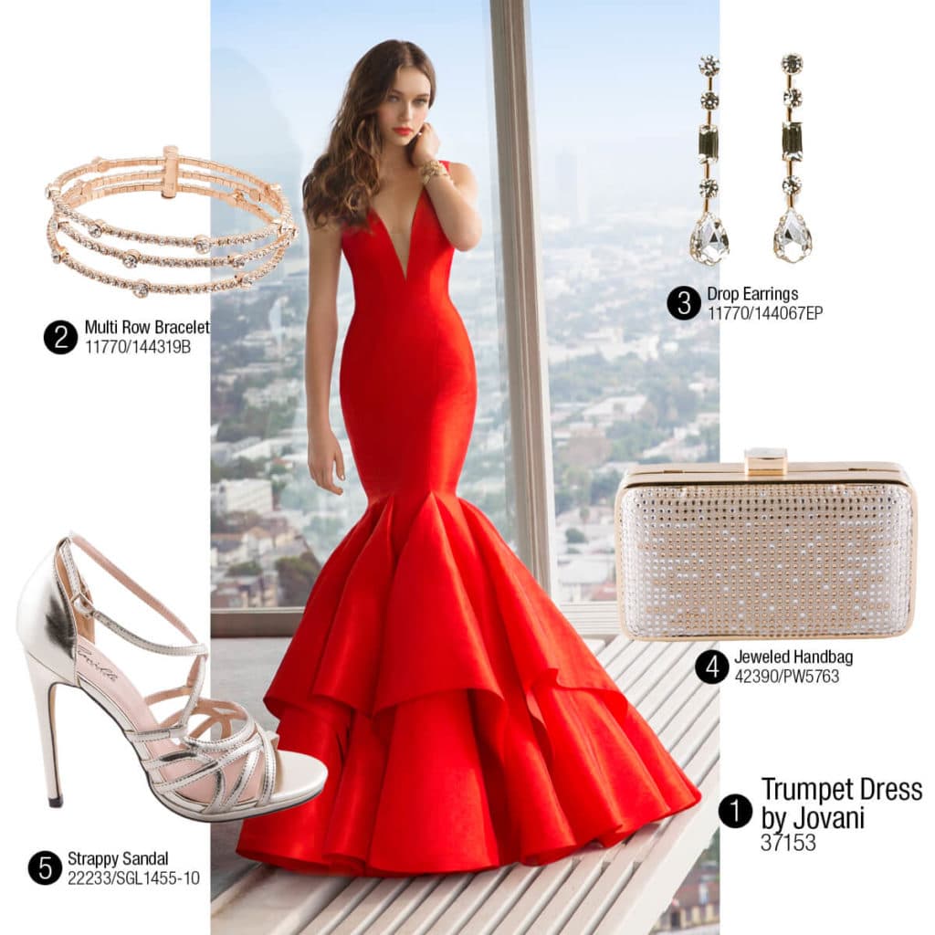 What could be more attractive than a ball gown in rich red. Under it, high hairstyles will be appropriate, as well as the presence of thin jewelry in red or silver.