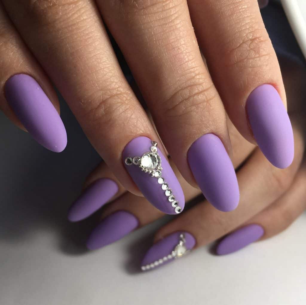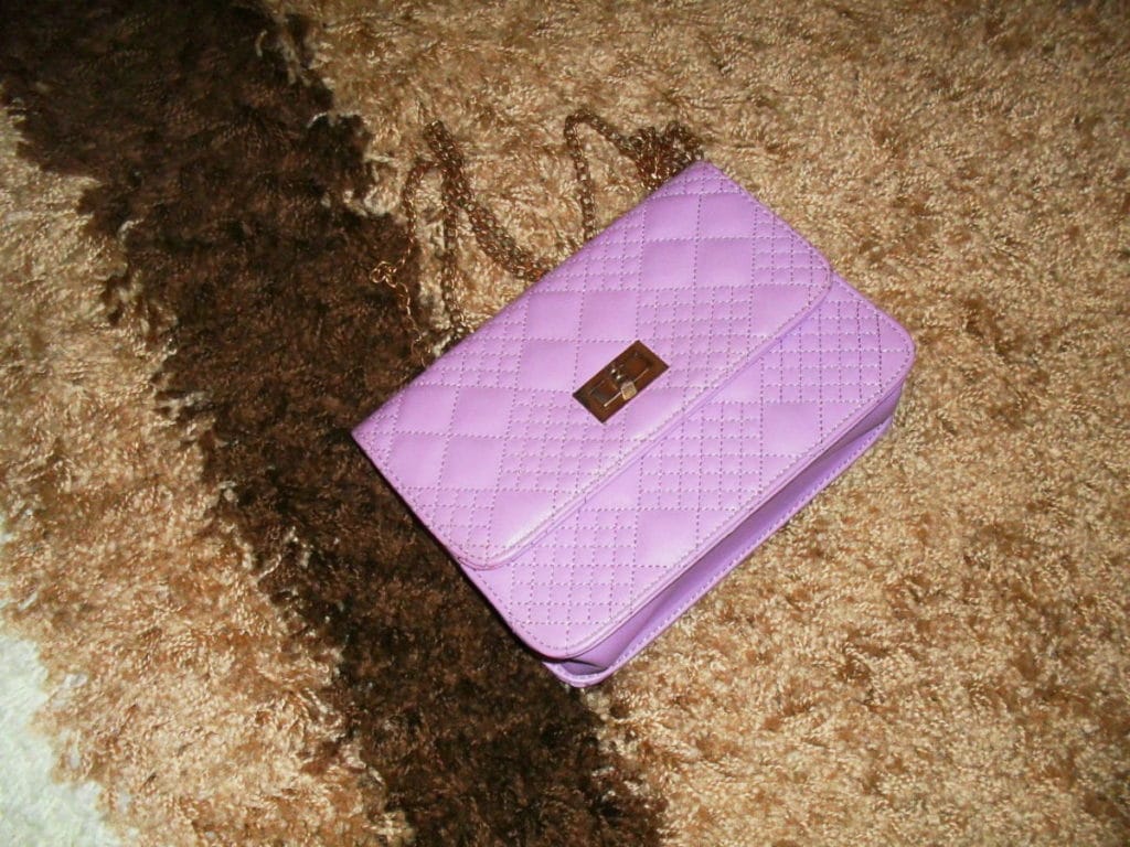 It is better to pick up a bag in a brown tone, and a manicure in lilac.