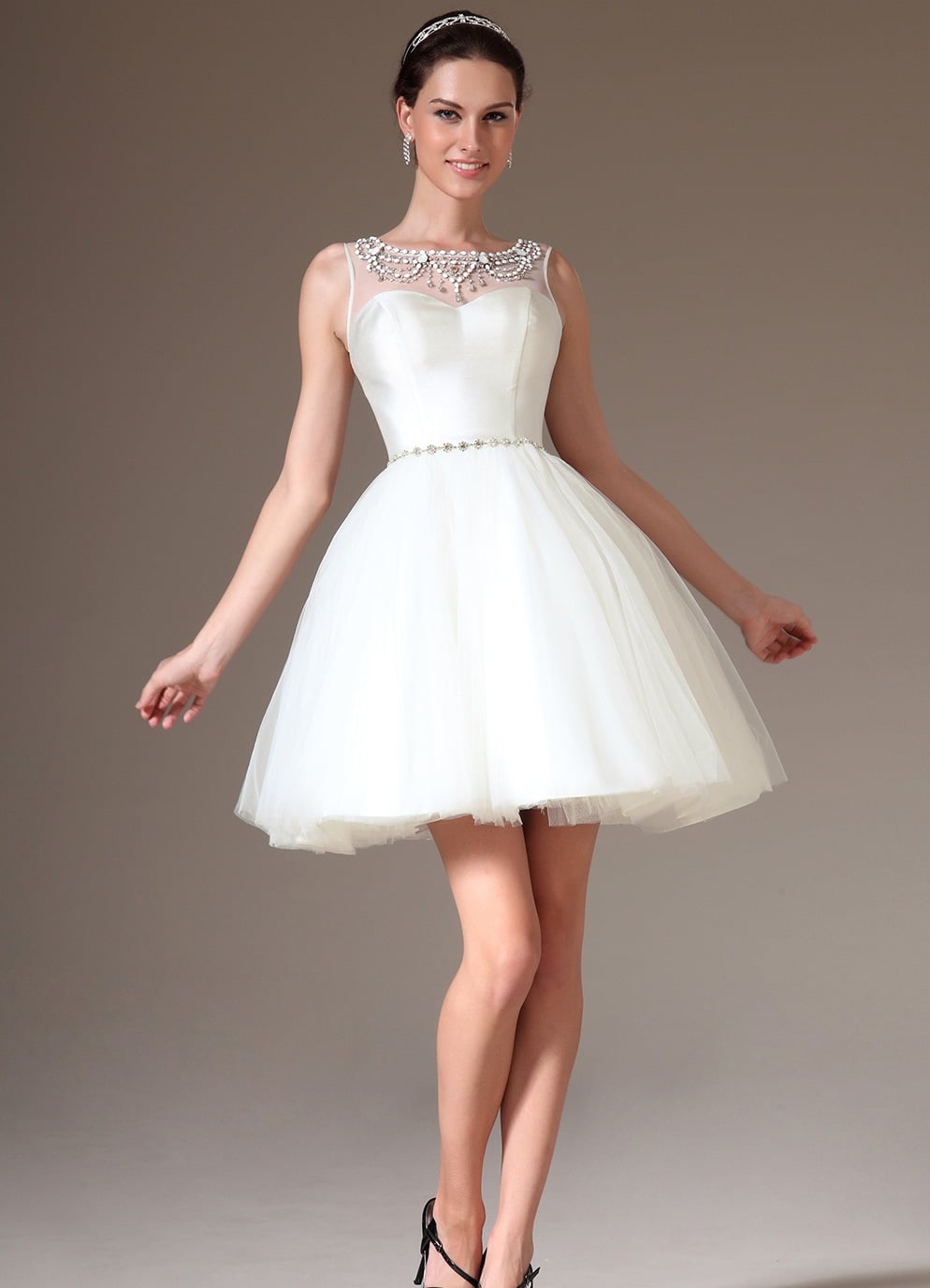 Shoes should be in high heels so that the hem of the dress does not drag along behind you.