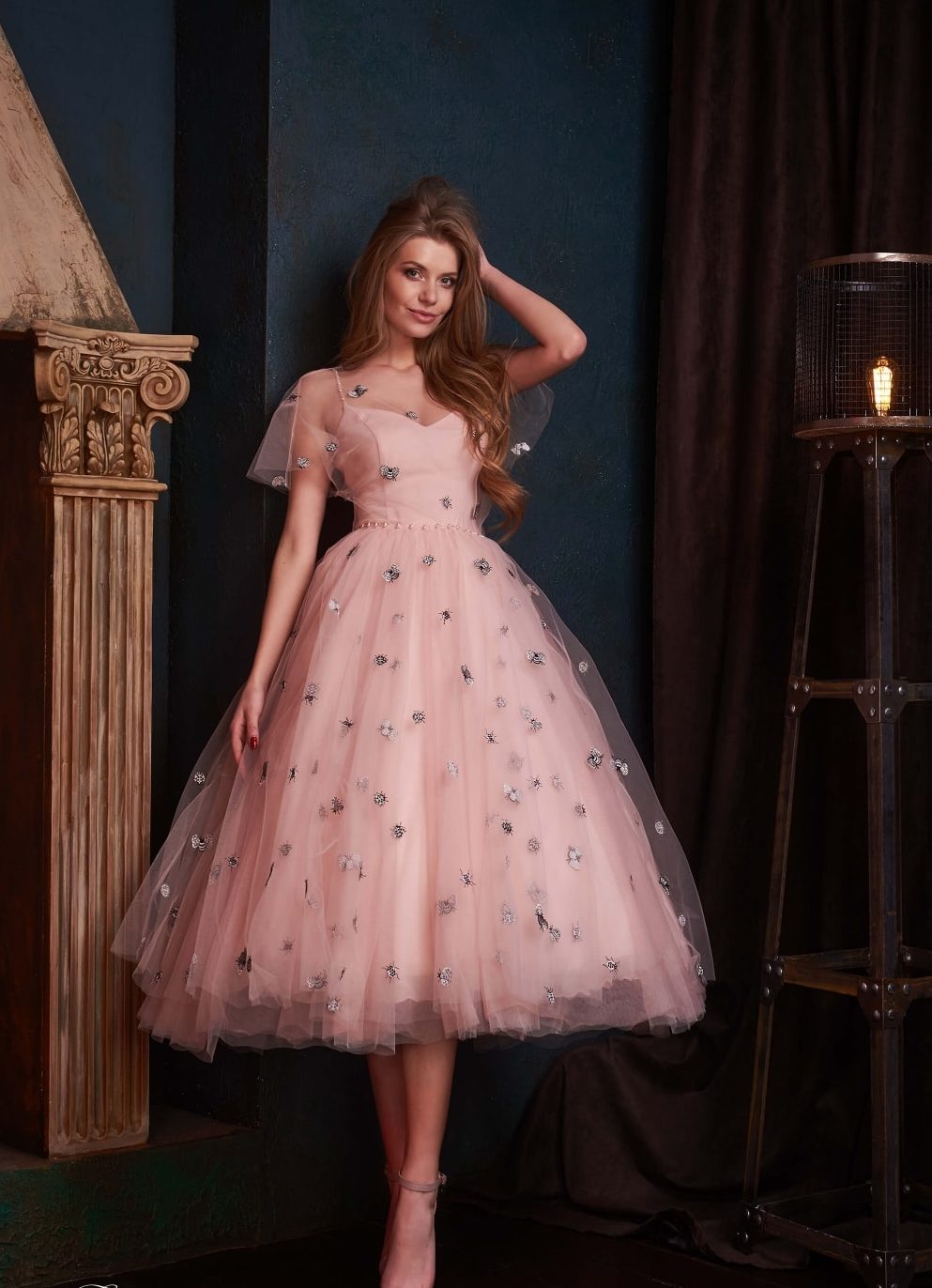This is the only way to call this image with a beautiful, pale pink dress. Complete the dress with decor and shoes in silver, which will make the image incomparable and chic.