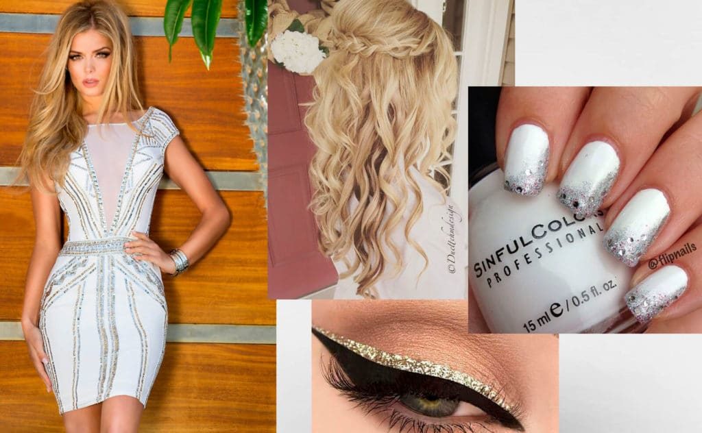 A white dress with silver decor will make you a cold, impregnable beauty. Complete the look with silver eyeliner in makeup, and make amazing cold manicure on the nails. Sandals in silver or white will complete the look.