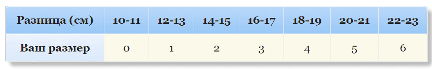 Now we turn to the calculations. Subtract the smaller from the larger number. For example, you get 89 cm, and the second number is 75 cm, which means 89-75 = 14. Below is a plate where you can find what your number means.